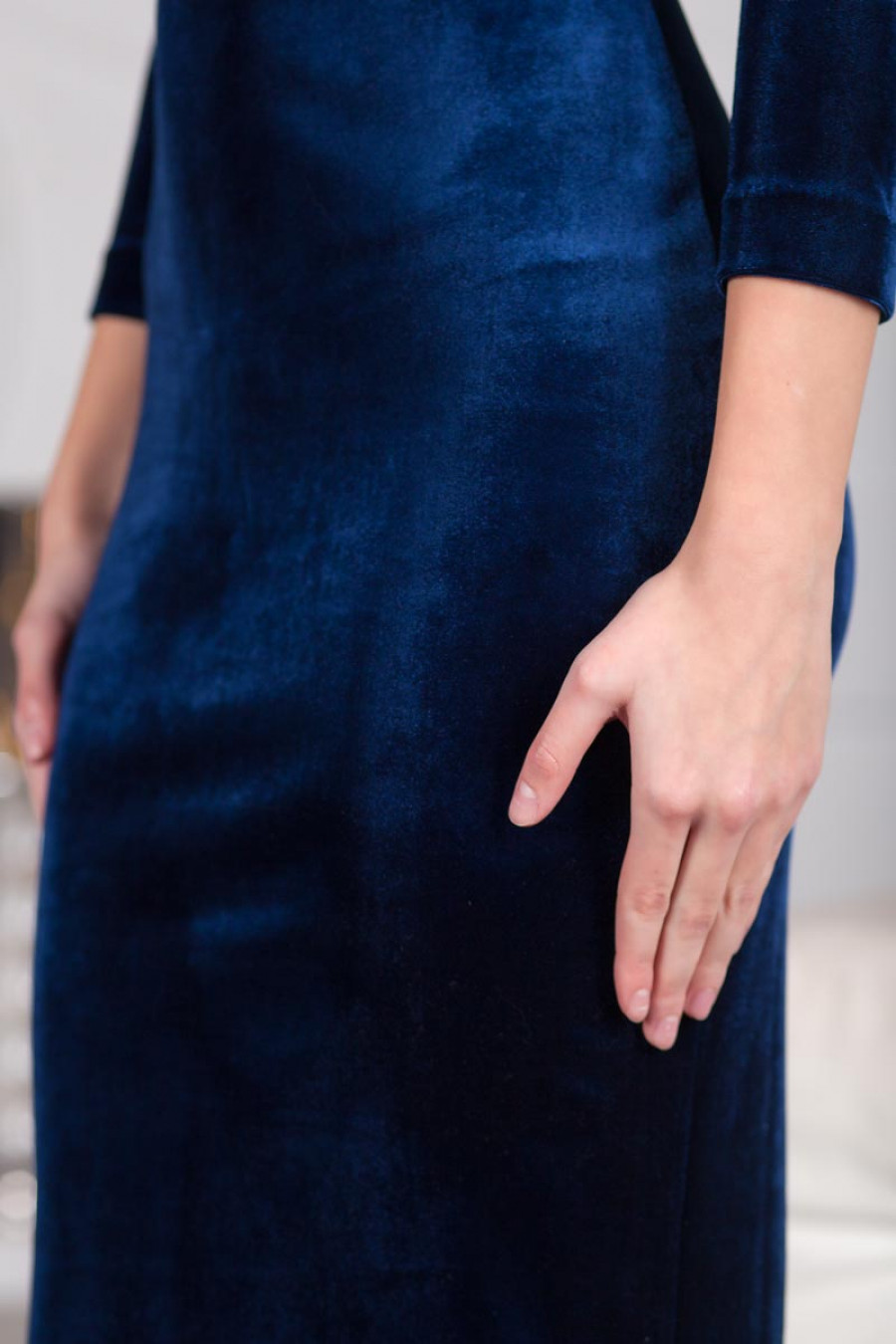 Восхитительное платье из роскошного бархата. Модель прилегающего силуэта длиной до колена с рукавом 3/4. Вырез-лодочка делает акцент на изящные плечи. Эластичная резинка по горловине позволяет надежно фиксировать платье на плечах. Изящным дополнением служит бархатка в цвет платья.