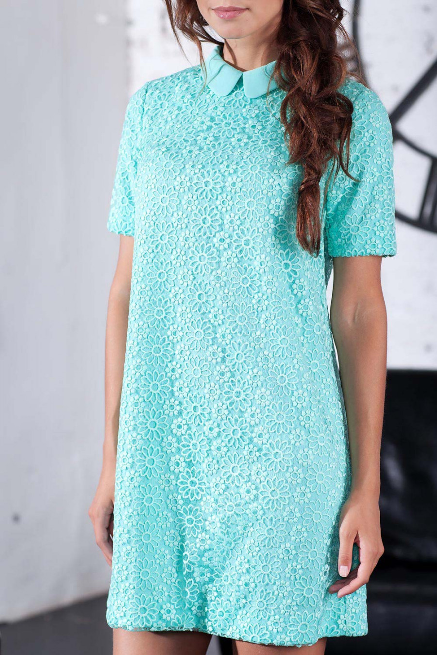 Элегантное и стильное платье с коротким рукавом. Модель силуэта клеш выполнена из кружевного гипюра на подкладке. Округлый вырез горловины оформлен отложным воротником с круглыми концами. Сзади застежка на потайную молнию. Эта модель прекрасно подойдет ка...
