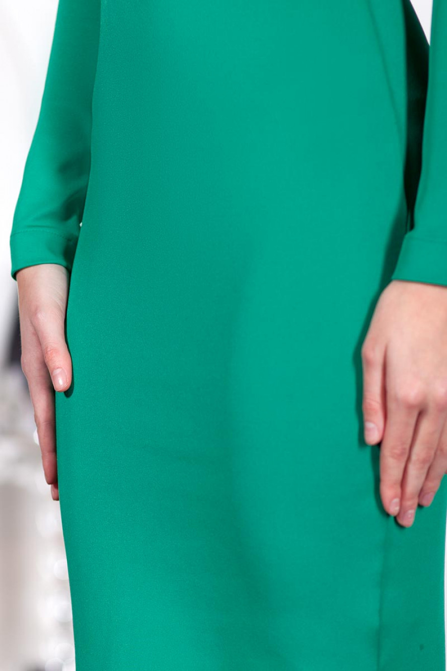 Нарядное платье из плотного однотонного трикотажа. Модель облегающего силуэта с длинным рукавом. Открытая спинка декорирована бретелями по плечам из ткани контрастного цвета. Эффектное платье - лучший способ наполнить образ непринужденным шиком!