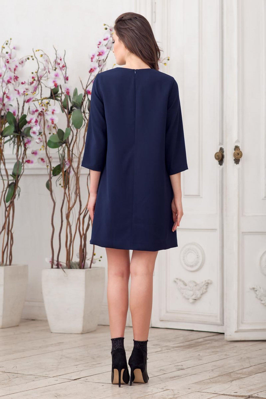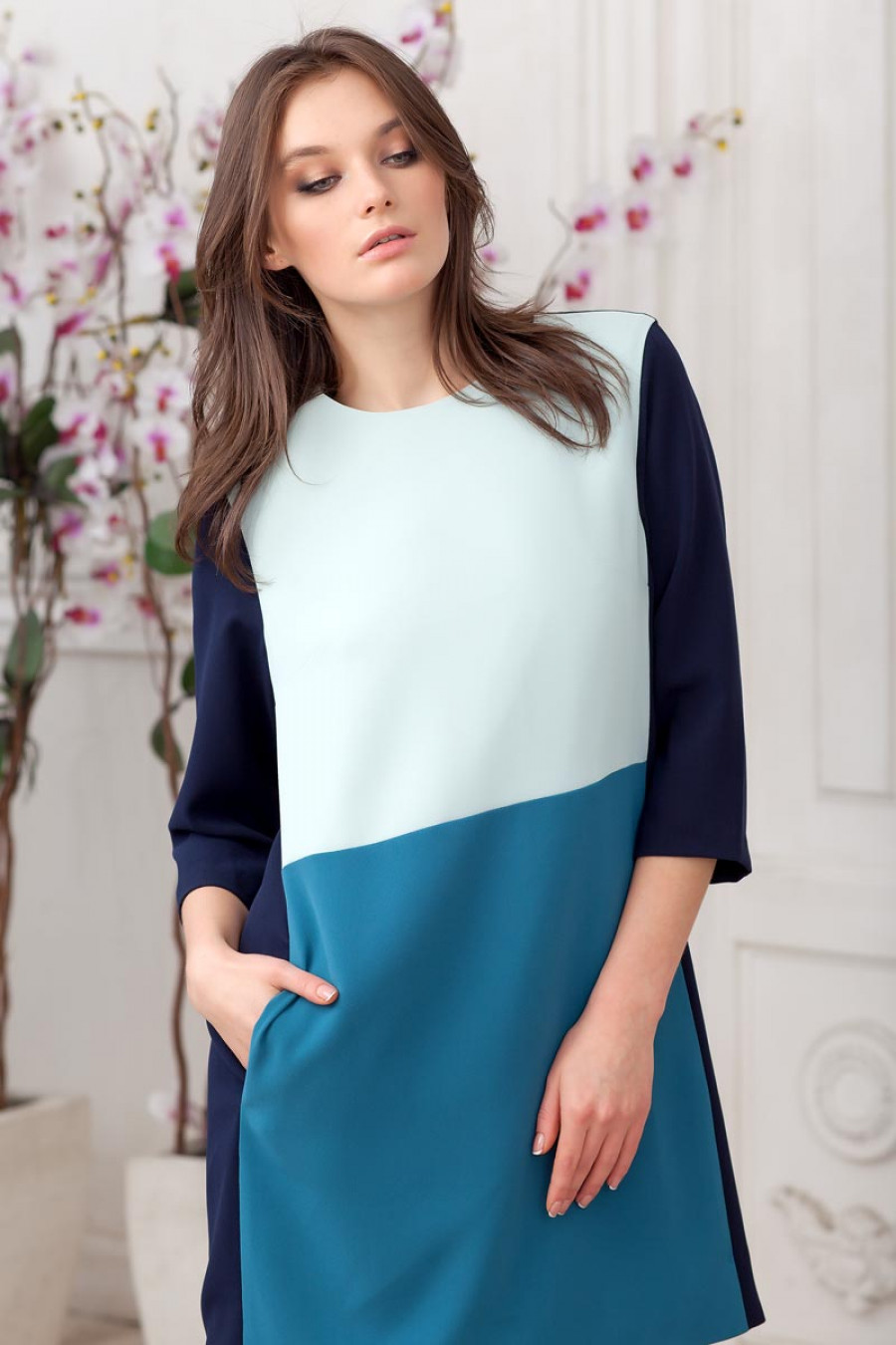Создавать женственные образы каждый день легко, если в Вашем гардеробе есть это повседневное платье. Круглый вырез и рукава 3/4 подчеркивают сдержанность модели. Оригинальное цветовое решение создает динамичный и стильный образ. Платье выполнено на подкладке. Сзади потайная молния.