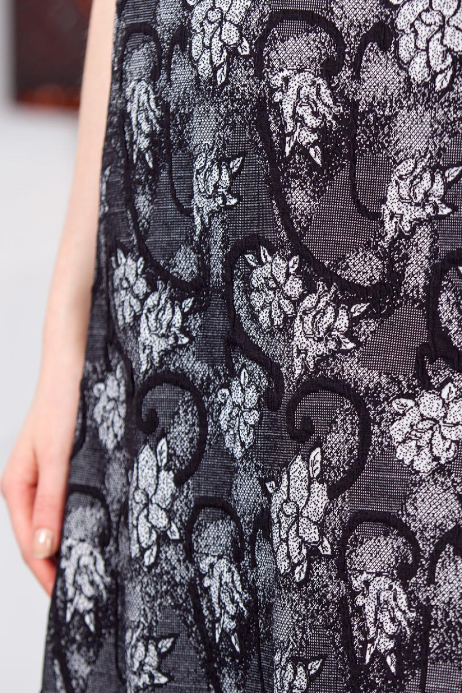 Стильное платье из трикотажного жаккарда с цветочныс рисунком. Модель свободного кроя с коротким рукавом. Сзади декорировано драпировкой "качели".