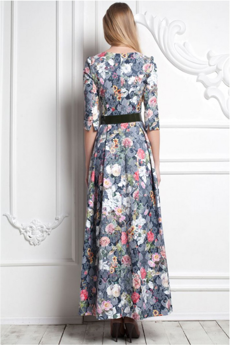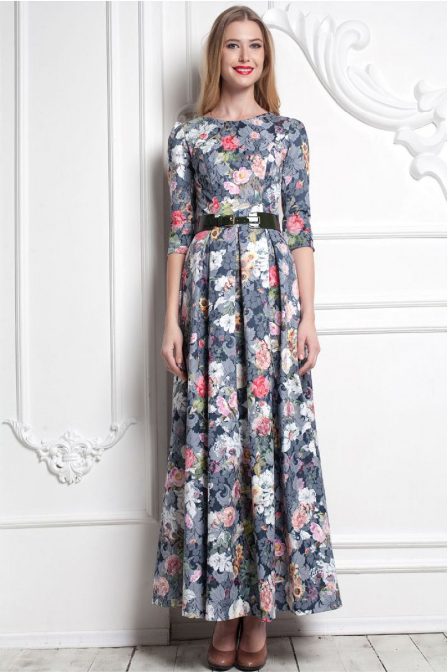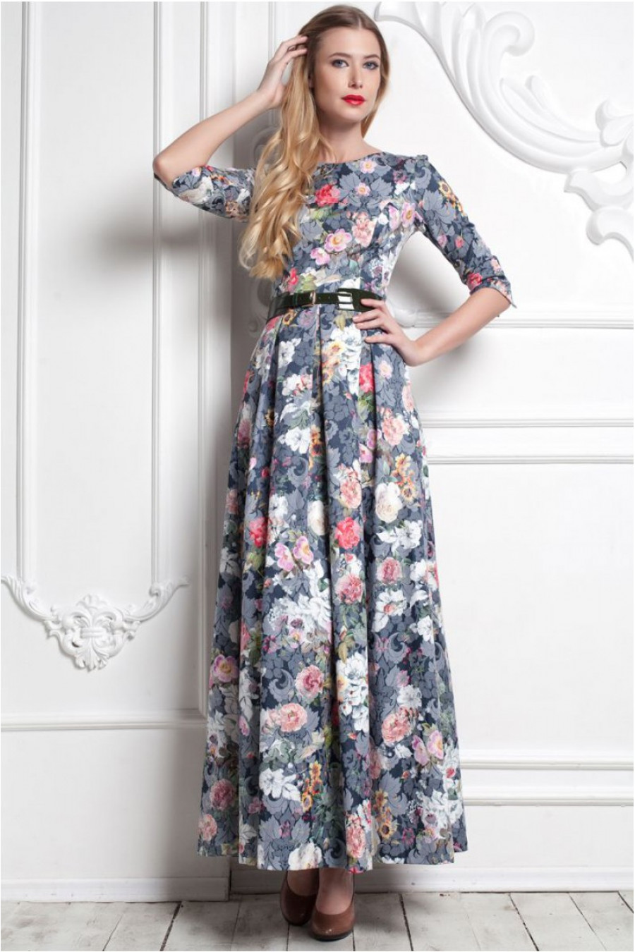 Благородное воплощение нежности и утонченности. Платье в пол с расклешенной юбкой. Модель данного платья имеет рукав - три четверти. Изящность талии подчеркивает тканный пояс в цвет данной модели. Платье с высоким овальным вырезом. Обратите внимание на натуральный состав ткани. Платье из 100% хлопка. Stella Di Mare - это не только мода плюс стиль, но и качество плюс комфорт.