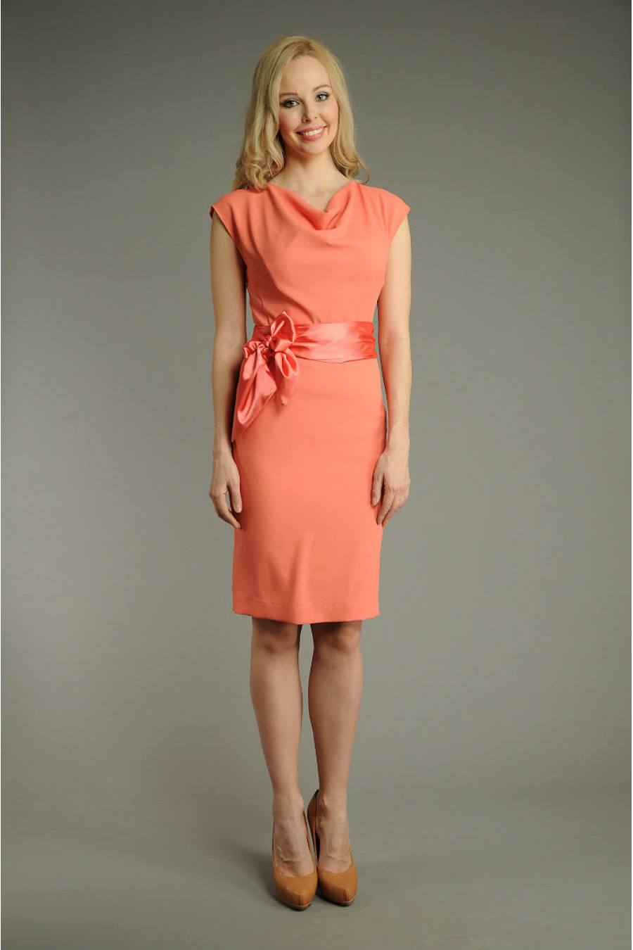 Красивое и стильное платье футляр незаменимо на все случаи жизни. Изящный воротник-хомут. Оригинальный лососевый цвет. Платье этой расцветки, ранее мы не вставляли на сайт. У Вас есть прекрасная возможность приобрести эту модель по спец цене.
