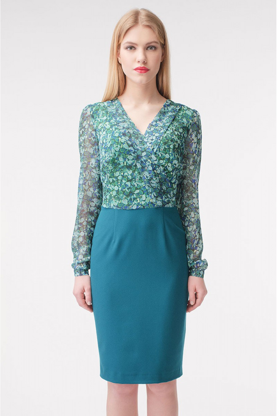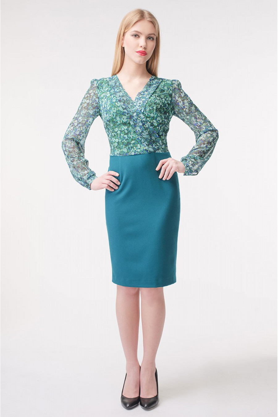 Оригинальное зеленое платье футляр, в духе классических вариаций платьев от Stella Di Mare. В новой весенне-летней коллекции мы не могли обойтись без платьев такого силуэта. И на работе и в повседневных делах, это платье футляр Вам обязательно пригодиться! Модель отрезная по линии талии прекрасно подчеркивает изящность силуэта. Высококачественная ткань этого платья не растягивается. В платья марки Stella Di Mare любой день становиться настоящим праздником!