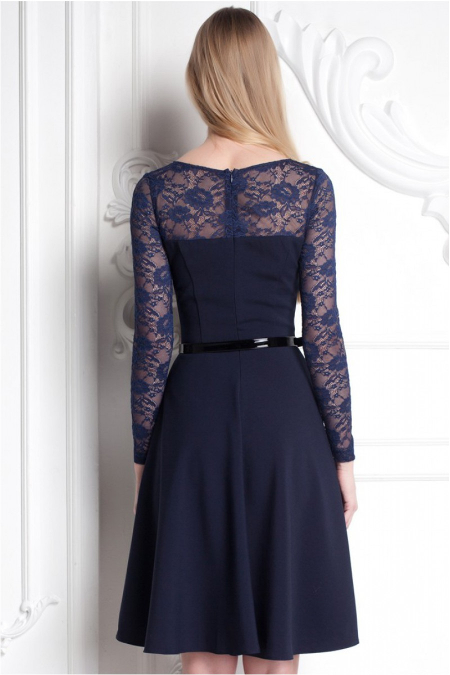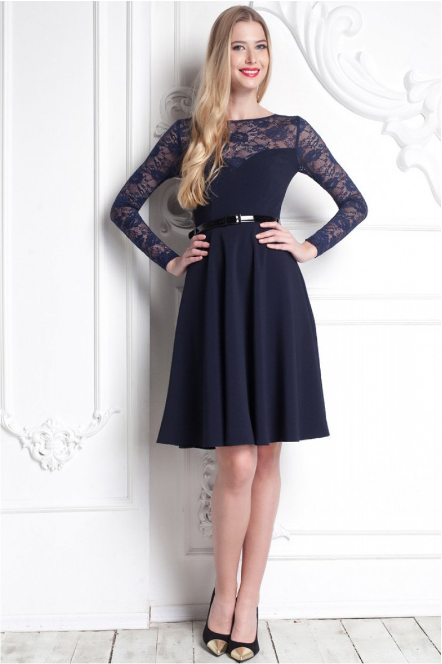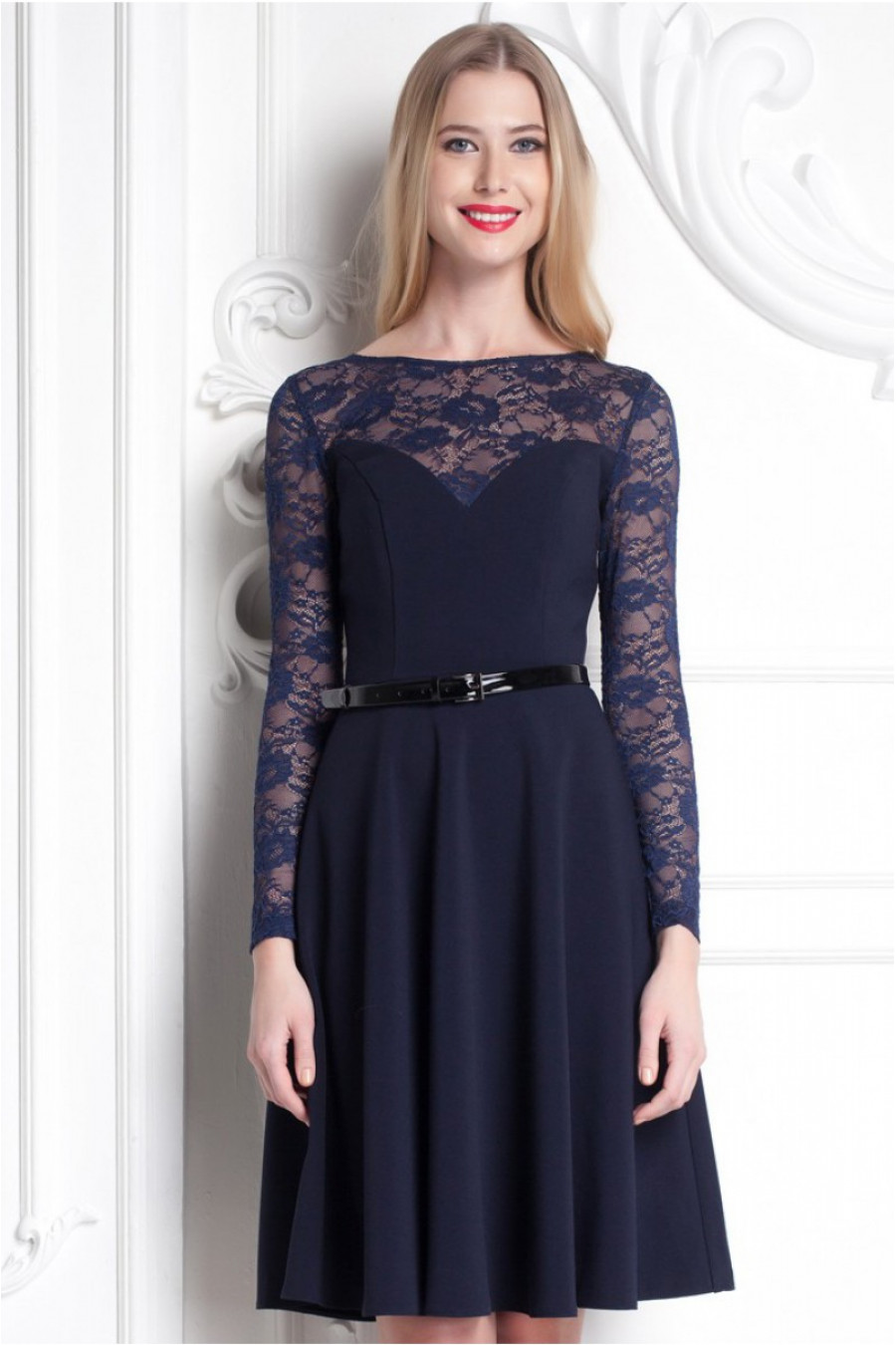 Stella Di Mare спешит представить Вам эксклюзивное платье с пышной юбкой темно - синего колорита. Модель данного платья имеет отличительную особенность: верхняя часть платья, спинка и длинный рукав украшен - гипюром из изящных цветочных рюш. Изящный тонкий ремешок прилагается в комплекте!