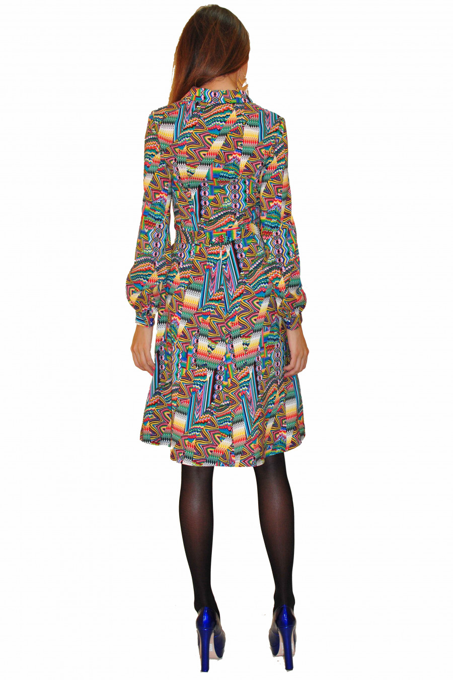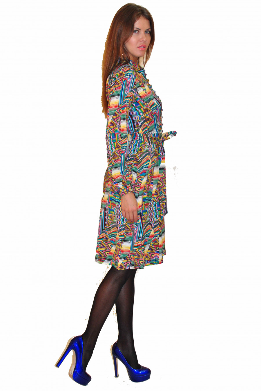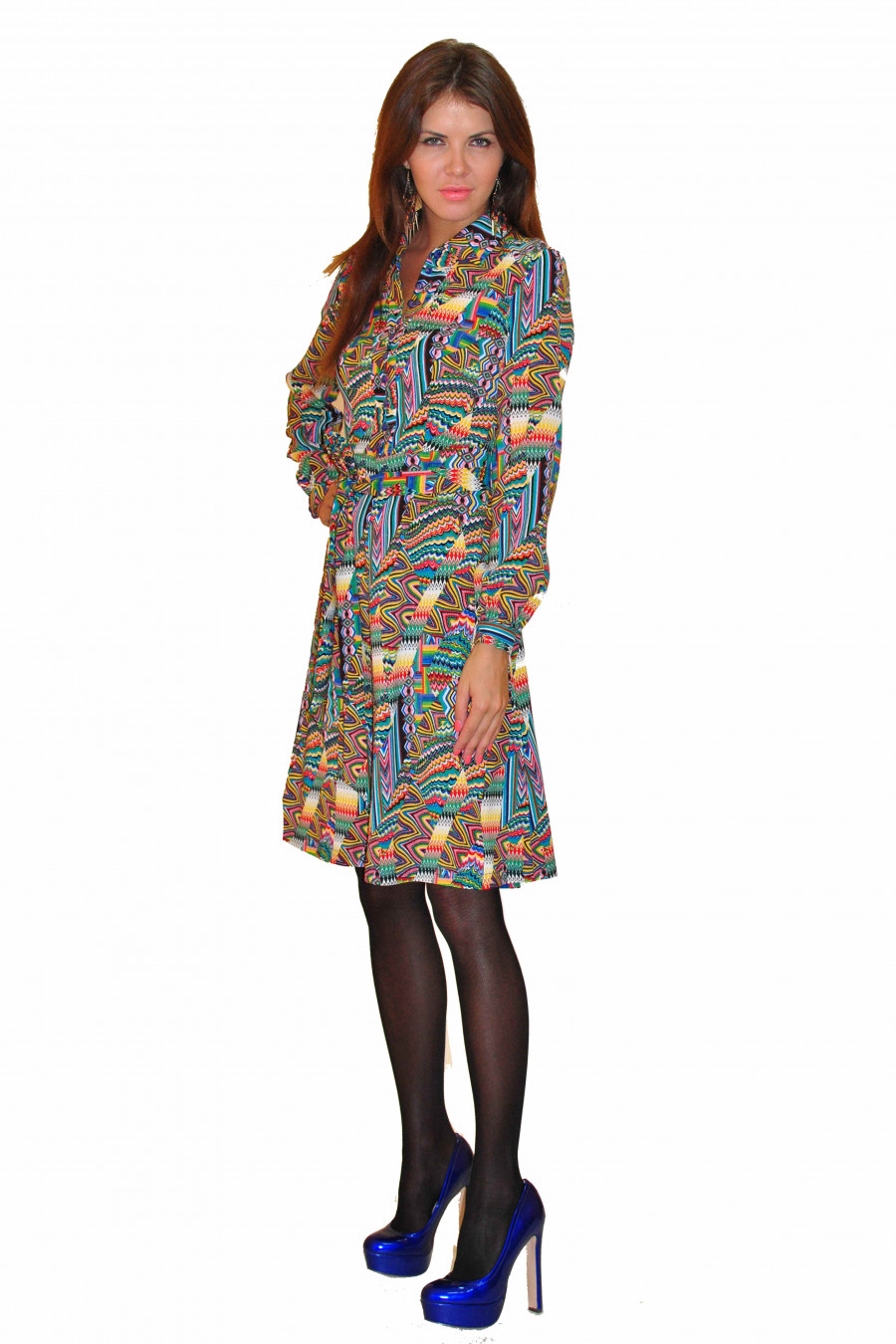 Элегантное платье безупречного кроя - то, что нужно Вам для создания модного, уверенного образа. Отложной воротник, длинные рукава с манжетами, съемный пояс. Длина изделия от бедра: р.42-44-40 см,р46-41 см,р.48-50-42 см., без подклада