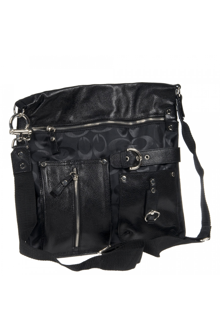 Снаружи: Одно отделение.На задней стенке карман на молнии и два кармана для мелочей.