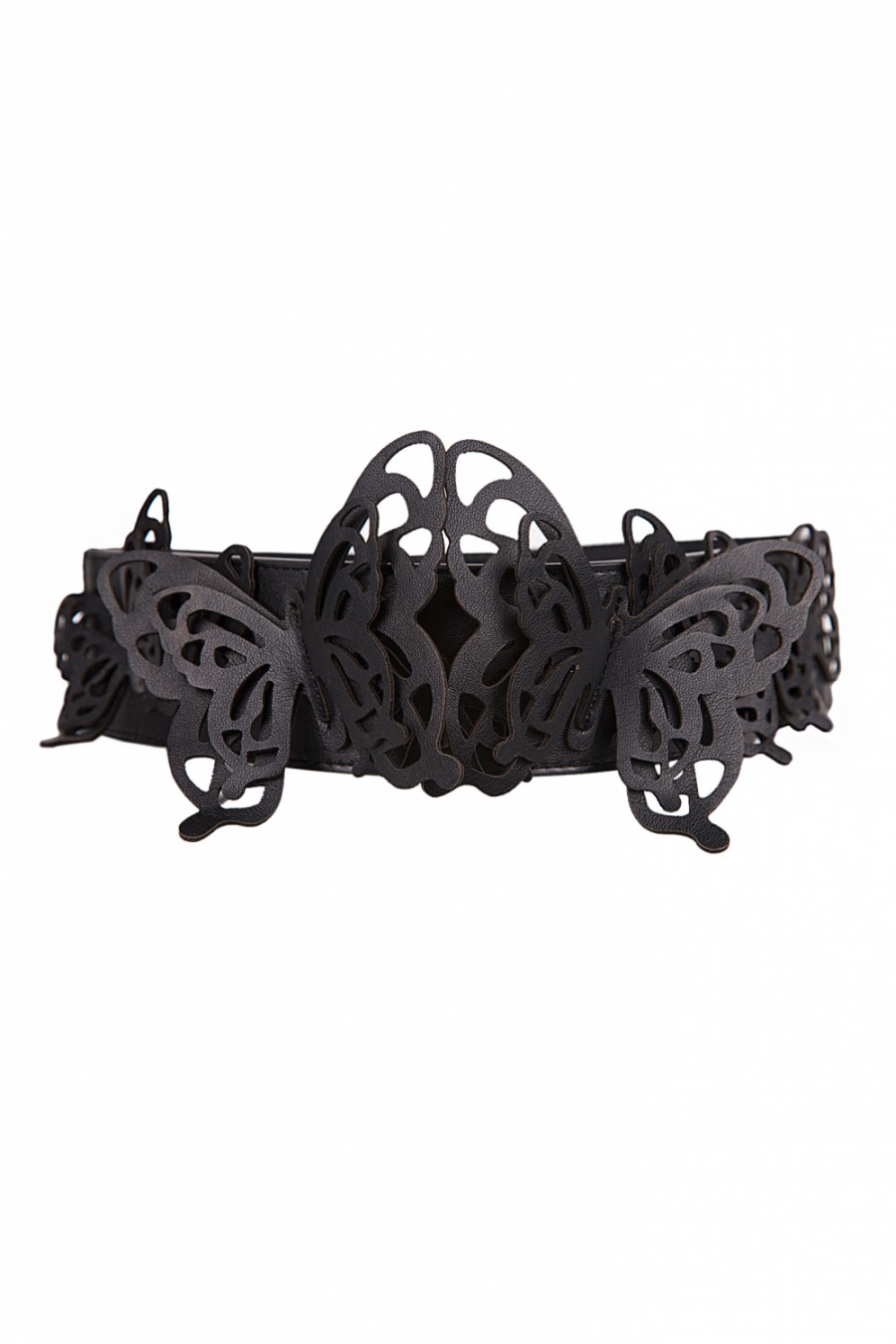 Оригинальный ремень из искусственной кожи высокого качества украшен красивыми бабочками, застежка сзади. Ширина 8 см.