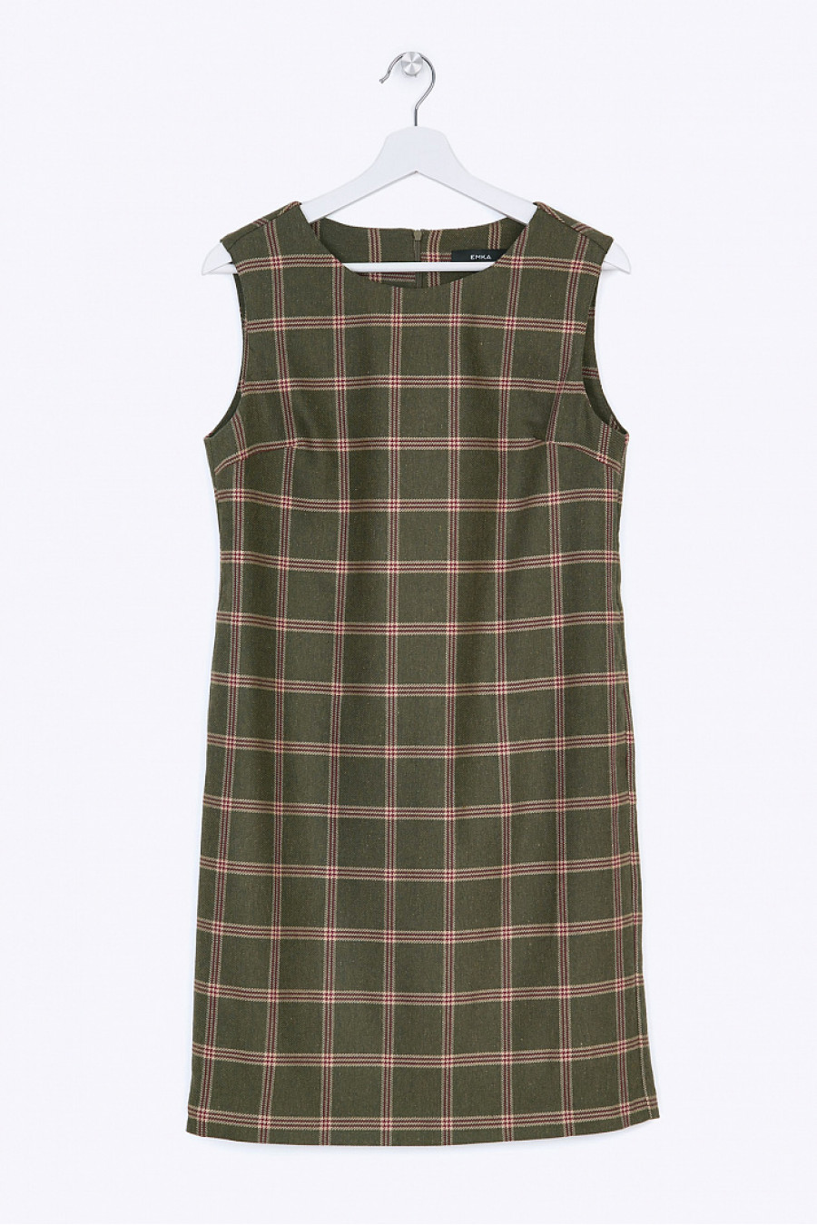 Теплое зимнее платье-сарафан практичного и модного цвета хаки в легкую клетку - прекрасный выбор для создания повседневного образа с помощью однотонных водолазок, блузок и легких джемперов. Плотная ткань с большим содержанием шерсти надежно защитит от офисных сквозняков, удобные скрытые карманы позволят не расставаться с мобильным или зеркальцем. Строгий минималистичный крой выгодно подчеркнет фигуру, удачная длина ладонь выше колена поможет не выглядеть старше. Модель подойдет всем молодым и активным, а в особенности - ярким шатенкам..Рост фотомодели 176 см.
