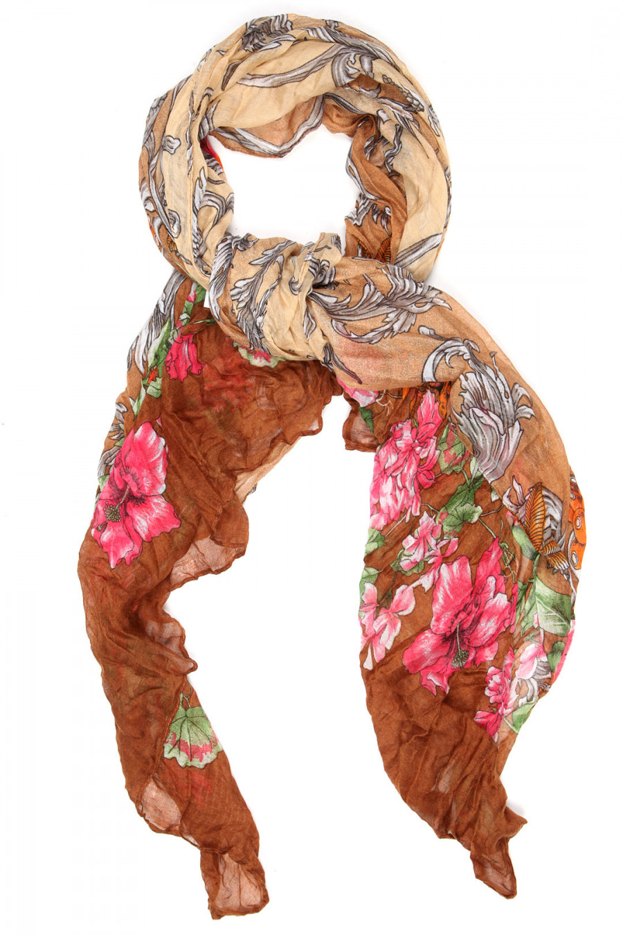Очень яркий шарф с цветочным принтом. Он послужит хорошим дополнением под множество стилей.