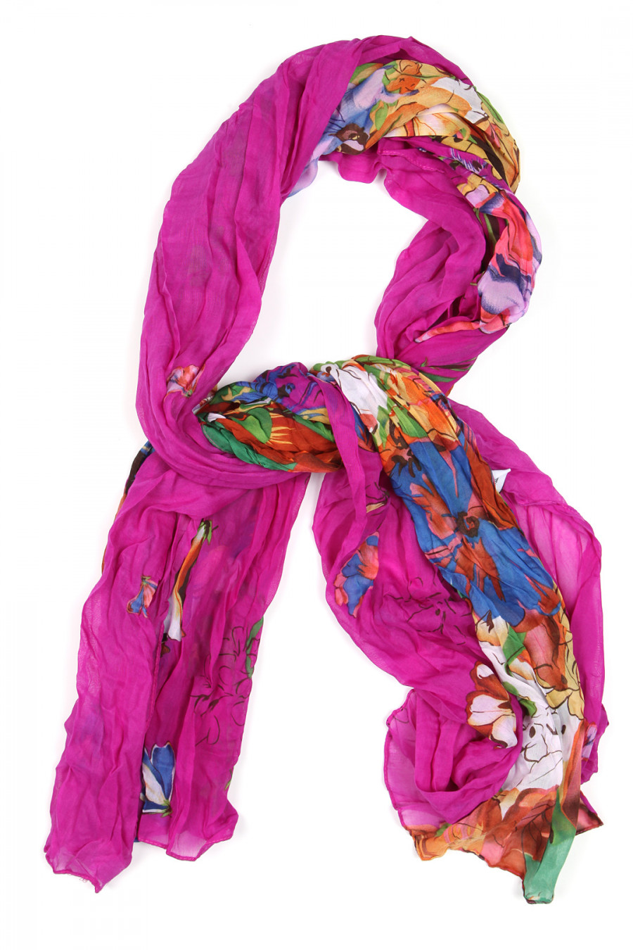 Очень яркий шарф с цветочным принтом. Он послужит хорошим дополнением под множество стилей.