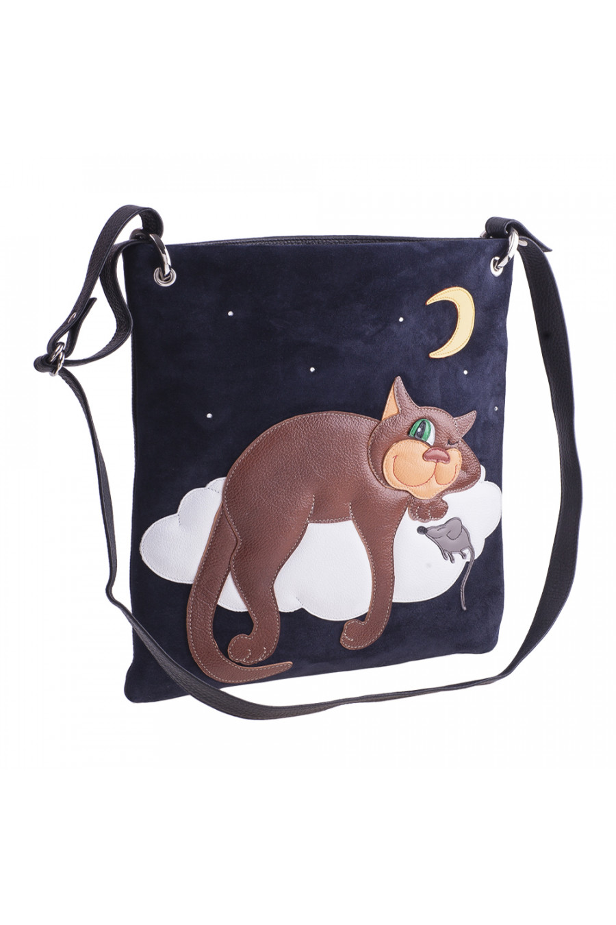 Сумка Alessandro Birutti 49-синяя-замша-черный-кот