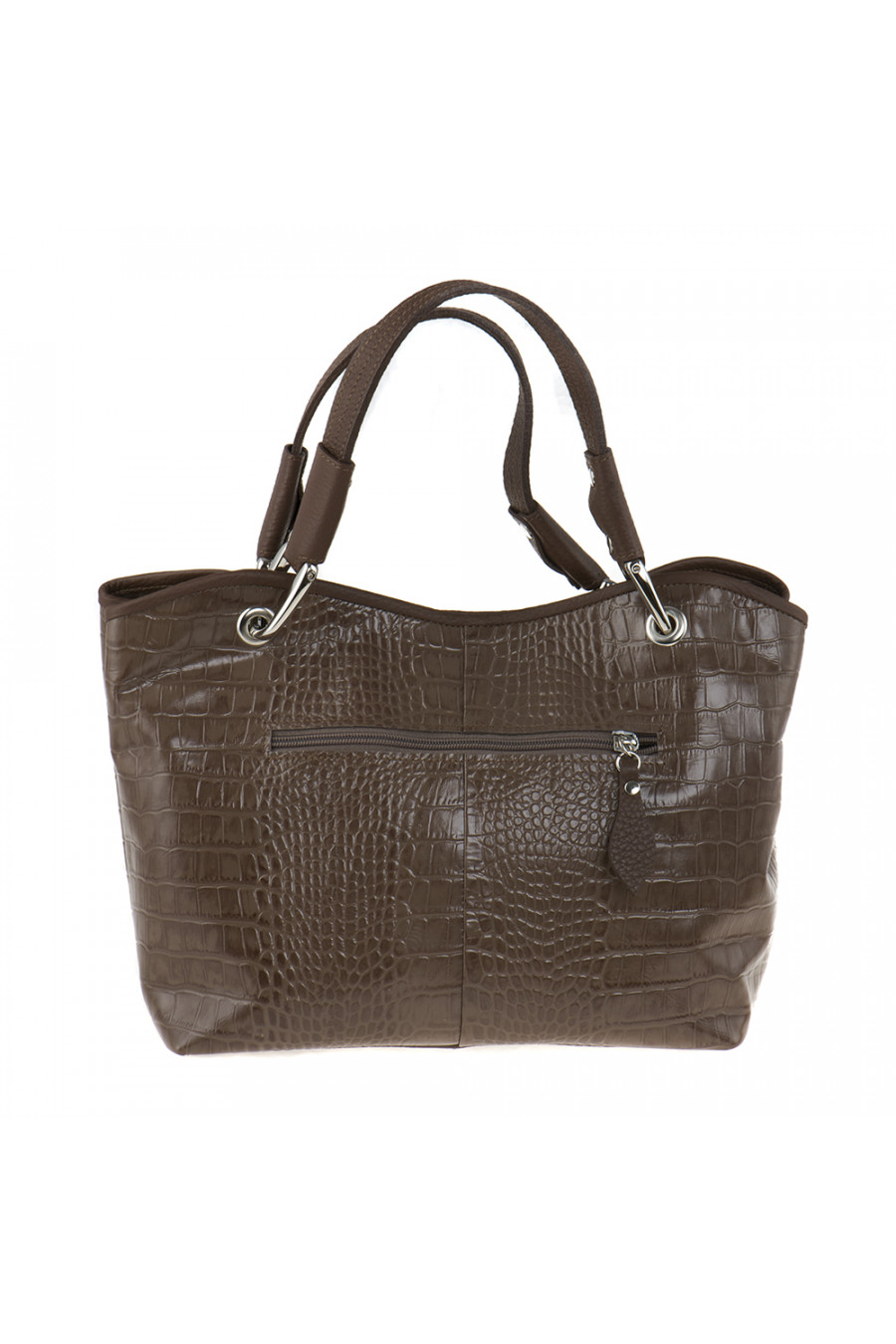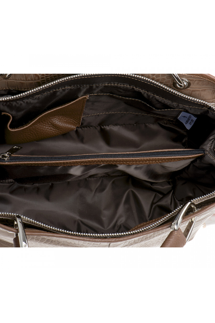 Снаружи: В сумке 3 входа: центральный - на молнии, два боковых на кнопках. Основное отделение разделено перегородкой на две части, справа и слева от которой имеются карманы для документов и мелочей.