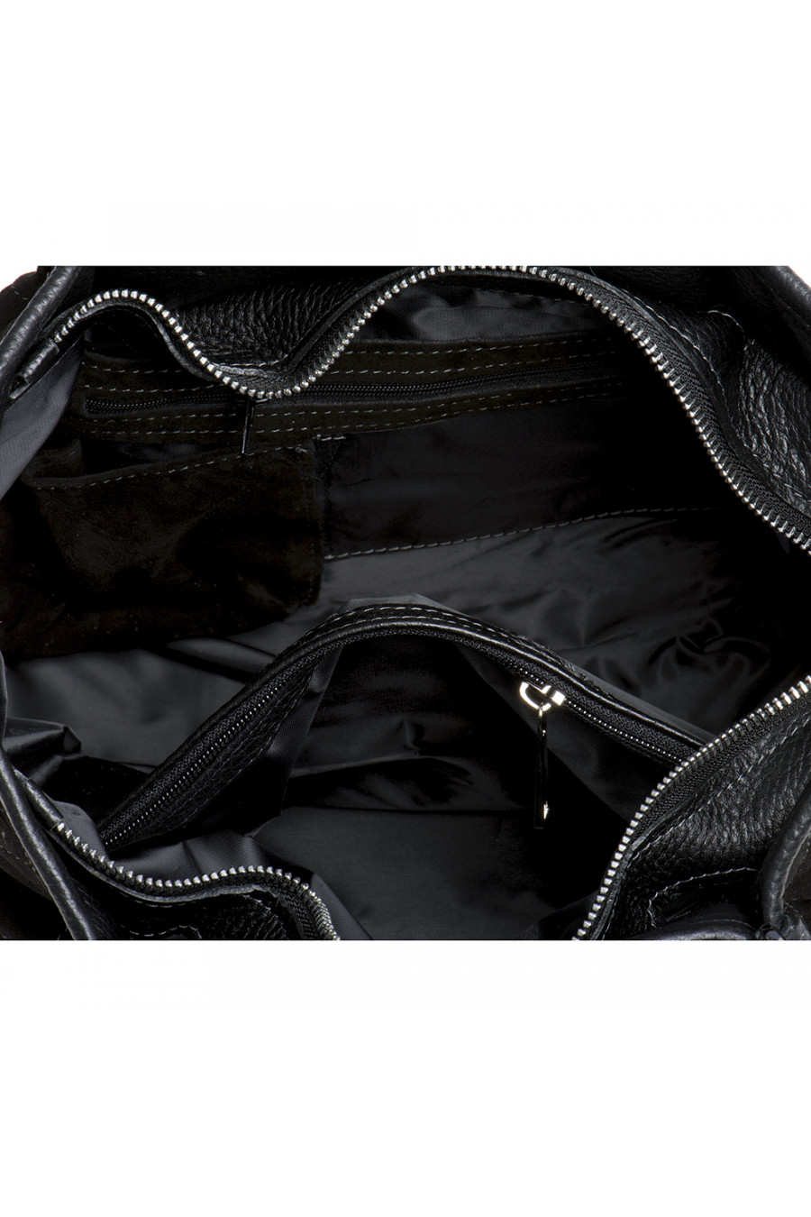 Снаружи: Одно отделение.На передней стенке- большое отделение на молнии.На задней стенке- два кармашка для мелочей и карман на молнии.