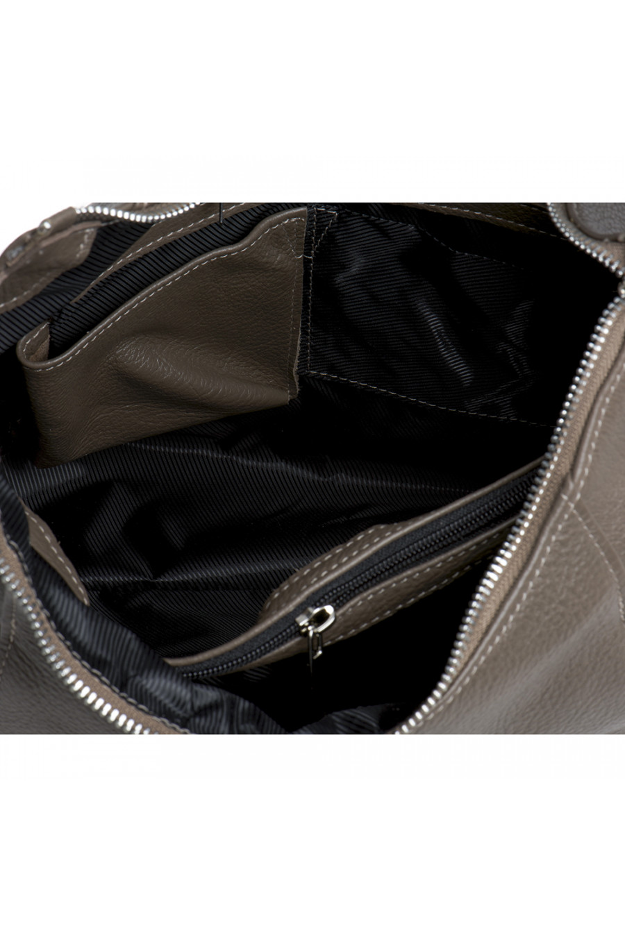 Внутри: На передней стенке - два вертикальных кармашка на молнии.На задней стенке- карман на молнии.