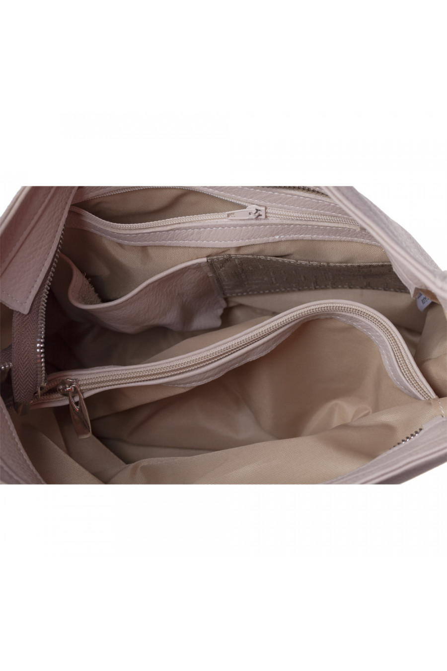Снаружи: Одно отделение.На передней стенке- большое отделение на молнии.На задней стенке- два кармашка для мелочей и карман на молнии.