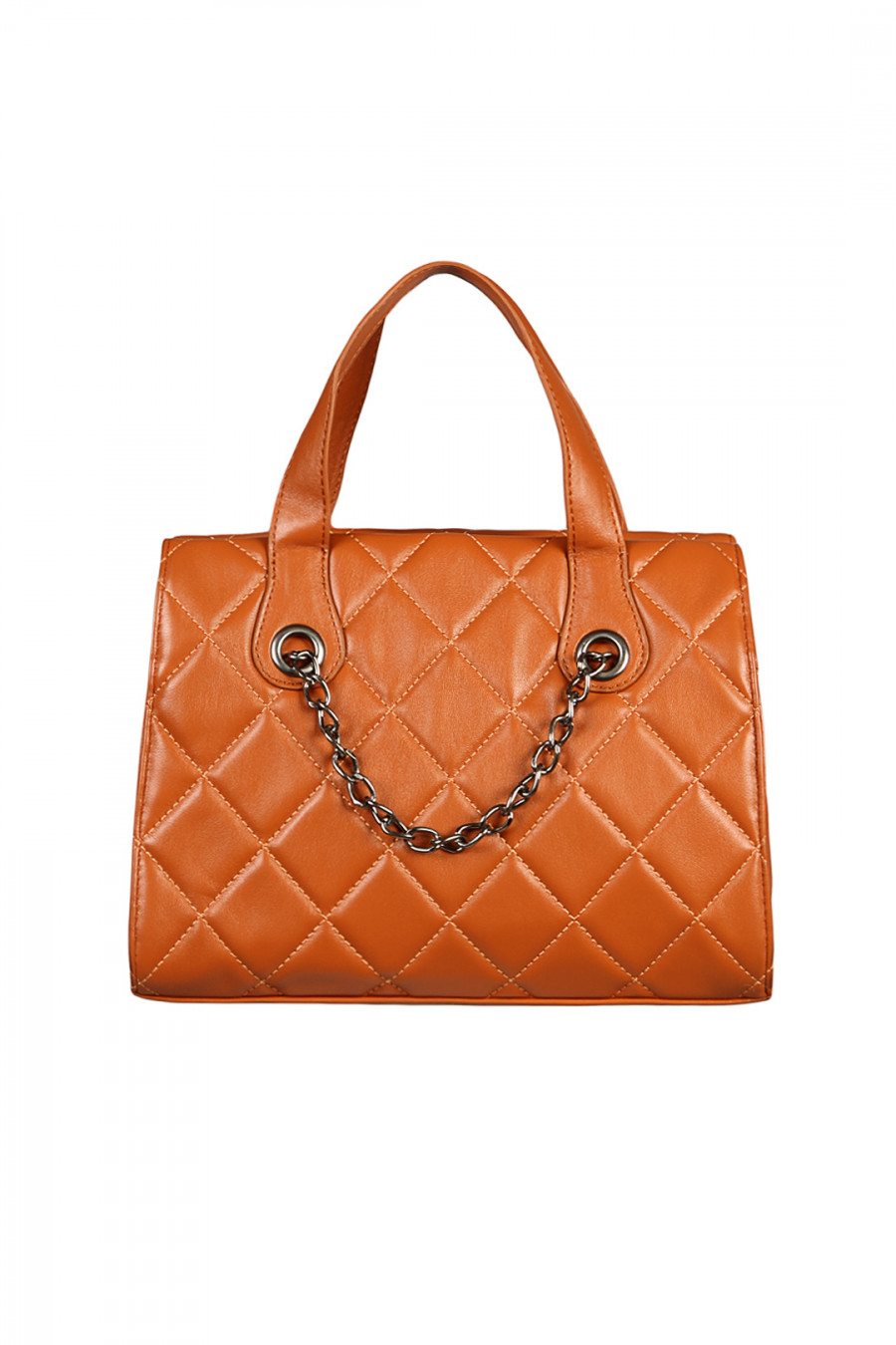 Сумка выполнена с изысканным теснением, украшена объемной цепочкой. Имеет две короткие ручки и съемный наплечный ремень. Длина 26 см, ширина 11 см, высота 20 см, длина наплечного ремня 105 см.