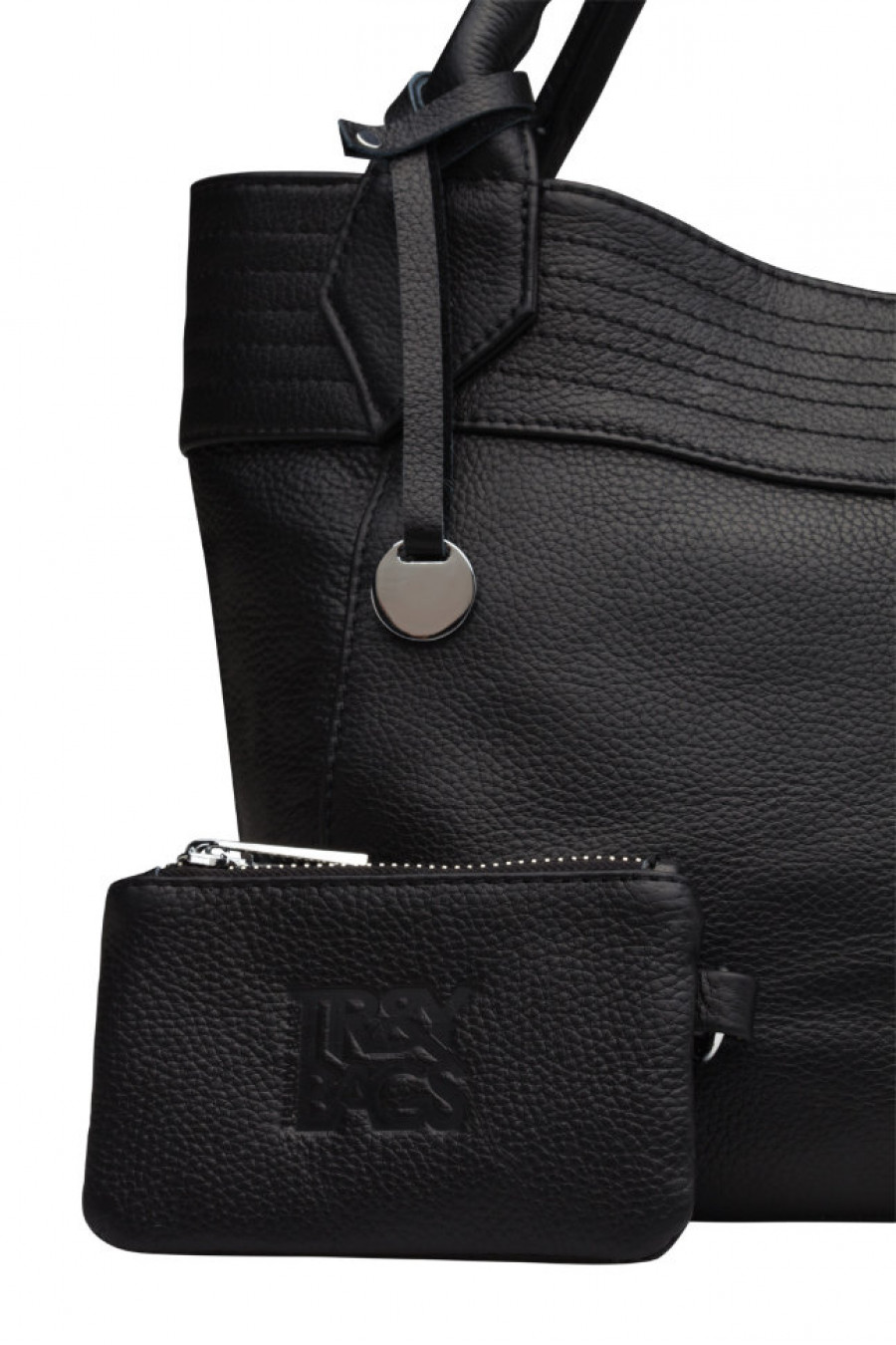 Абсолютно универсальная сумка из качественной натуральной кожи. Средний размер и стильная форма делает эту сумку подходящей и к деловому костюму и к нарядному платью. Такие милые детали, как маленькая косметичка на ремешке и диск на кожаном ремешке придают этому аксессуару неповторимый шарм. Разъема ручек достаточно, чтобы носить сумку на плече. Цвет черный.