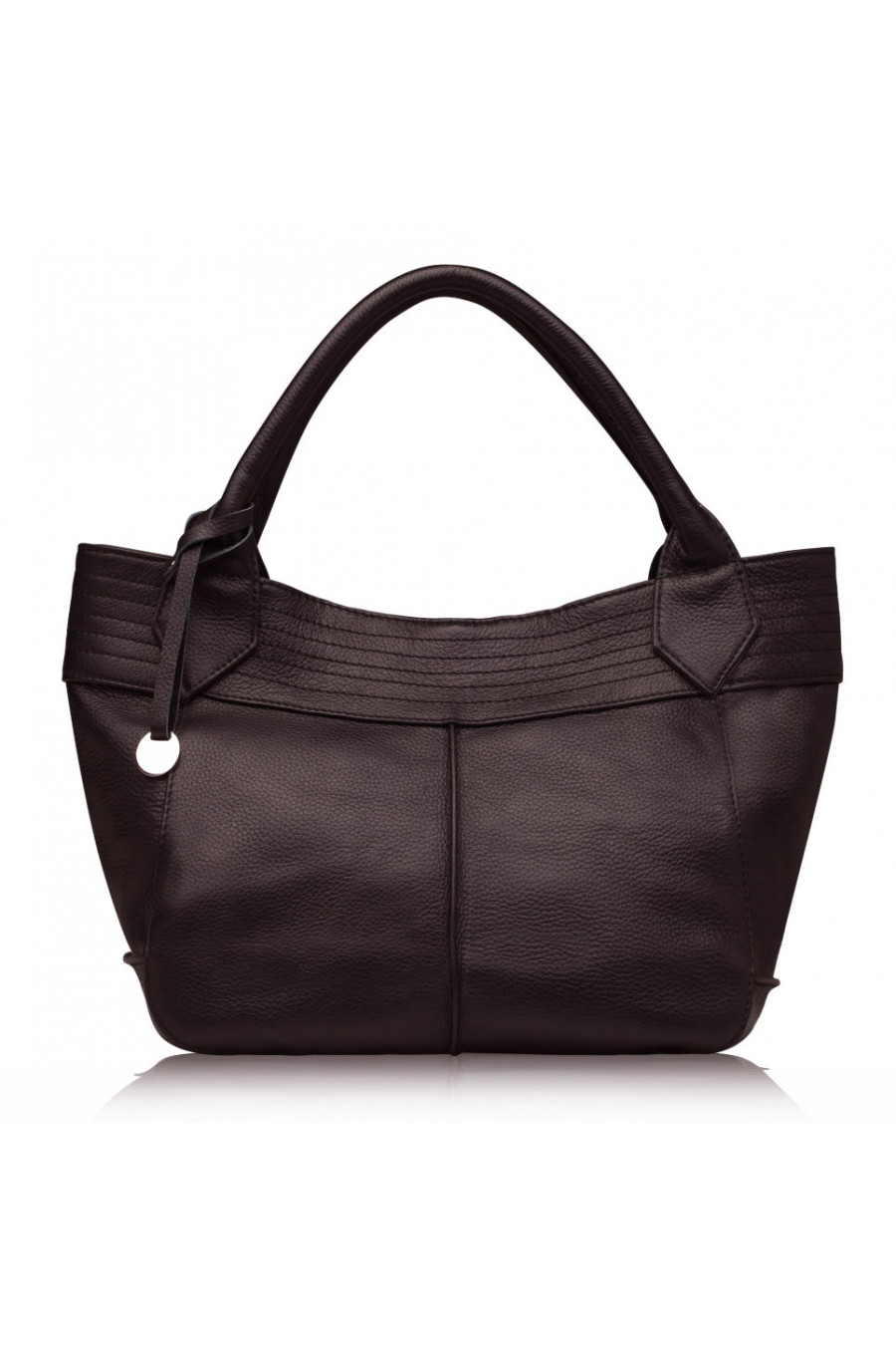Абсолютно универсальная сумка из качественной натуральной кожи. Средний размер и стильная форма делает эту сумку подходящей и к деловому костюму и к нарядному платью. Такие милые детали, как маленькая косметичка на ремешке и диск на кожаном ремешке придают этому аксессуару неповторимый шарм. Разъема ручек достаточно, чтобы носить сумку на плече. Цвет темно-коричневый.Цвета:черный, голубой, серый, оранжевый, цвет розового коралла и цвет слоновой кости.