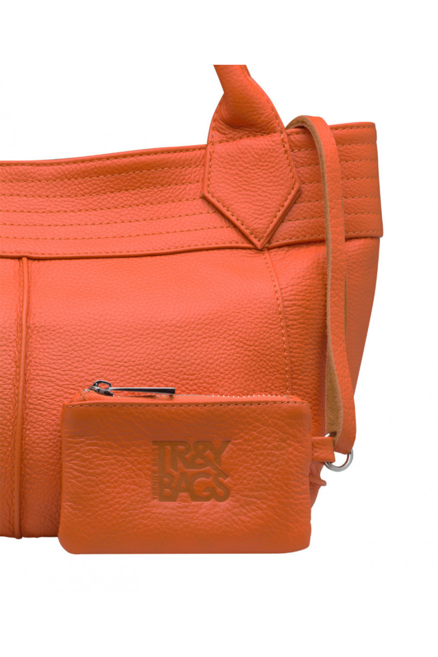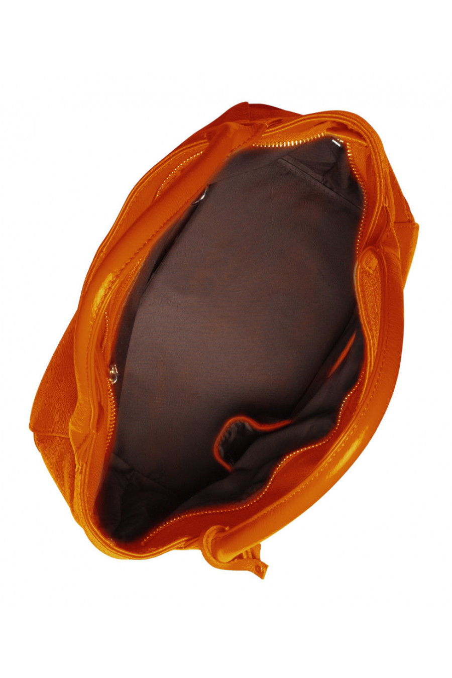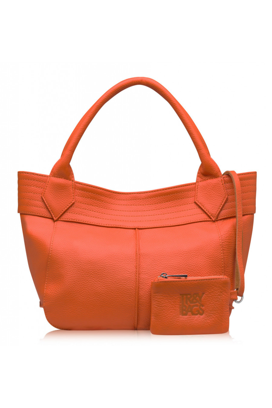 Абсолютно универсальная сумка из качественной натуральной кожи. Средний размер и стильная форма делает эту сумку подходящей и к деловому костюму и к нарядному платью. Такие милые детали, как маленькая косметичка на ремешке и диск на кожаном ремешке придают этому аксессуару неповторимый шарм. Разъема ручек достаточно, чтобы носить сумку на плече. Цвет оранжевый.Цвета:черный, голубой, серый, коричневый, цвет розового коралла и цвет слоновой кости.