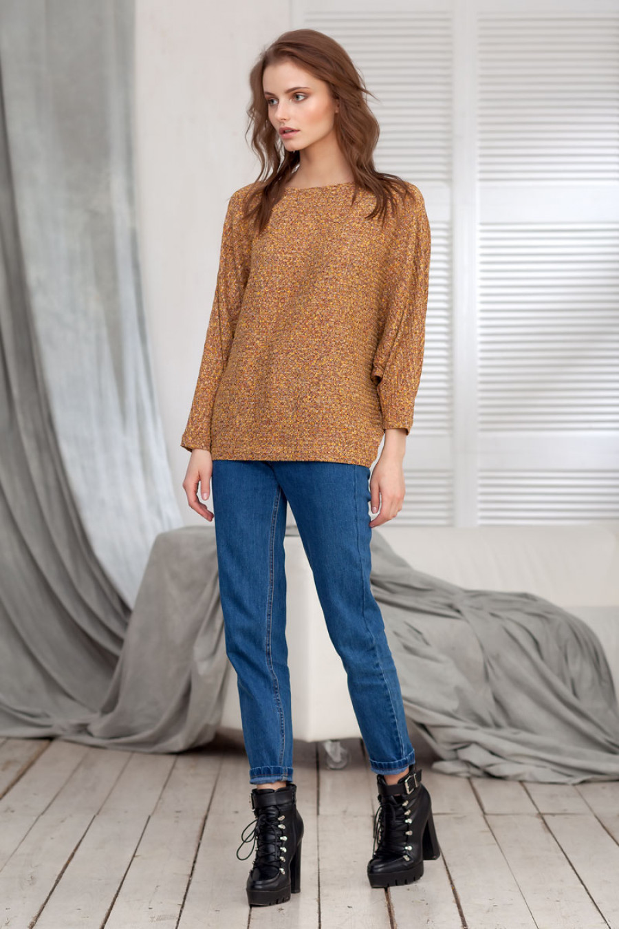 Лаконичный свитер с длинным рукавом - классика для базового гардероба. Мягкая фактурная вязка с меланжевым эффектом придают модели игривость и легкость. Круглый вырез подчеркивает женственные линии плеч и шеи. Сдержанный дизайн делает свитер идеальным комби-партнером для любых брюк, джинсов и аксессуаров.