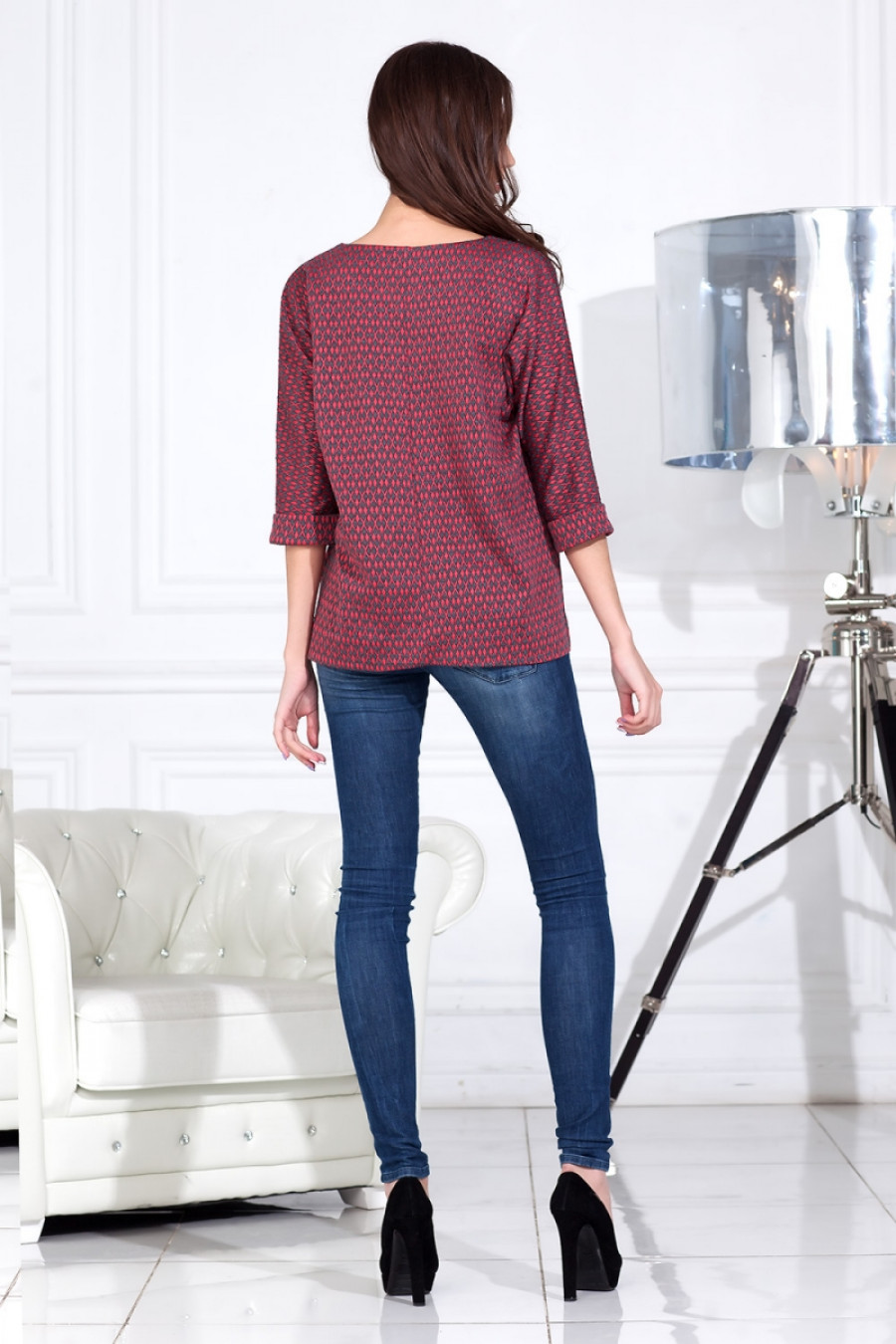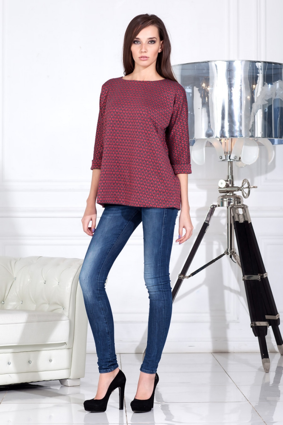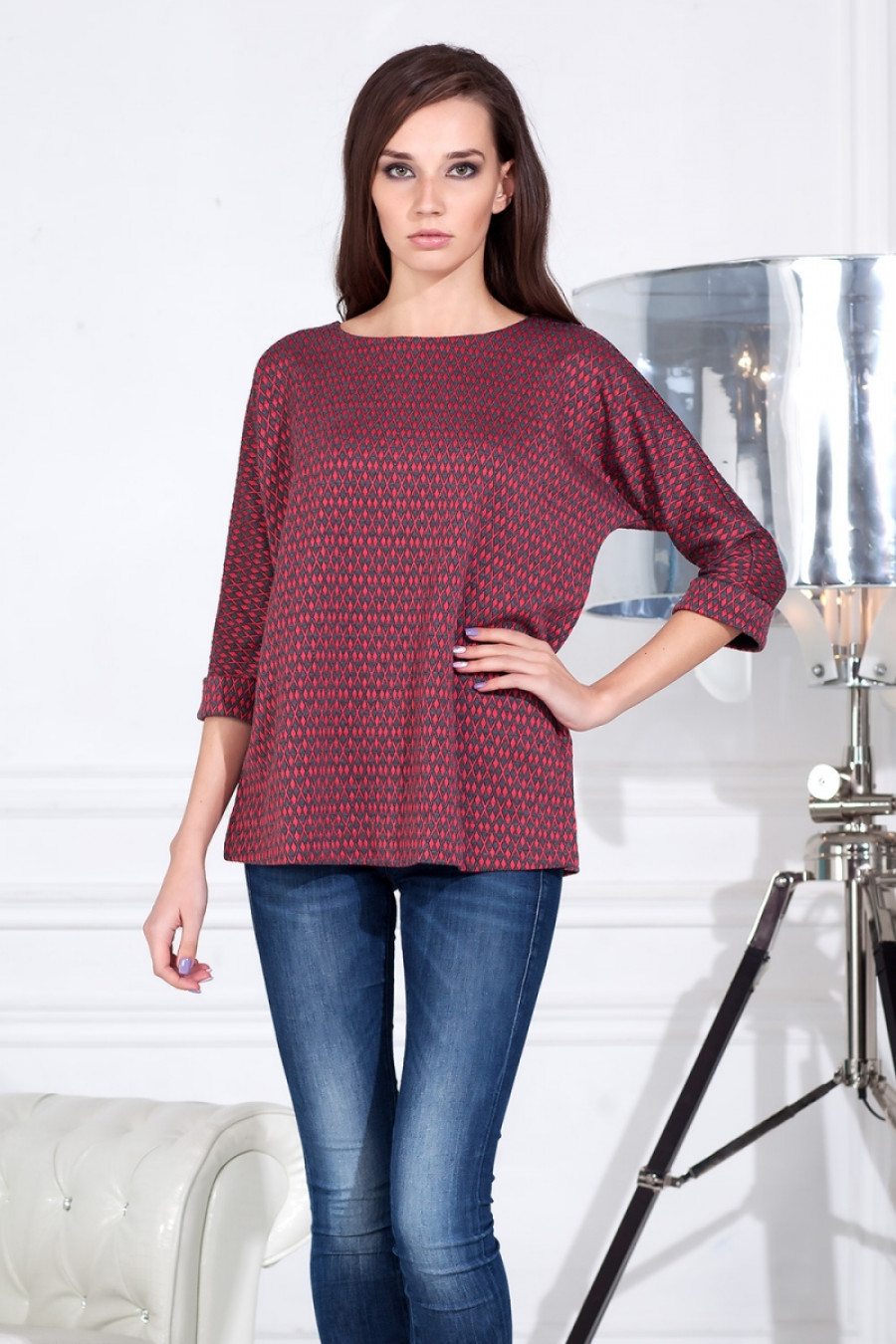Свитшот из структурного цветного трикотажного полотна с цельнокроенным рукавом 3/4 с манжетом.