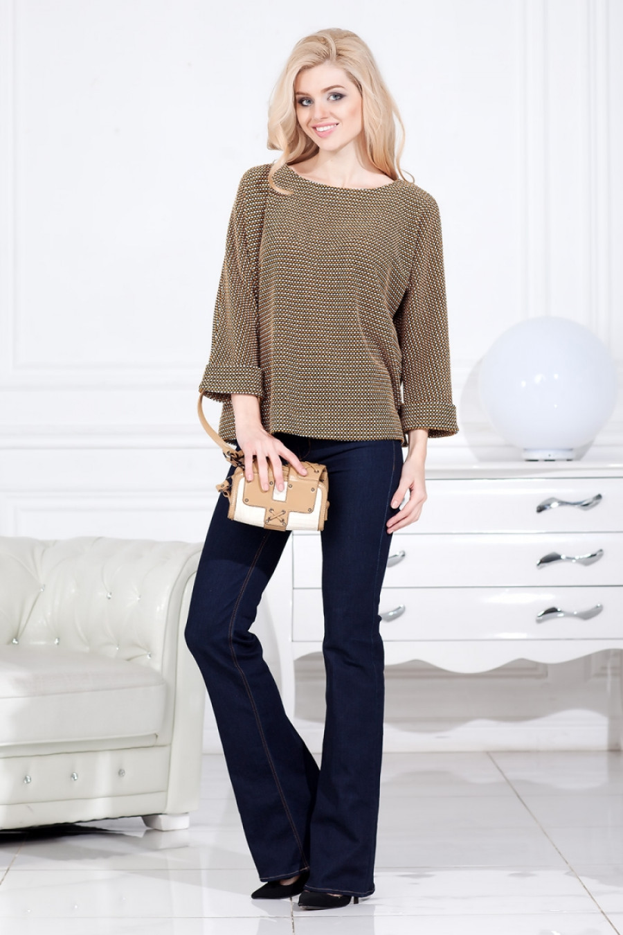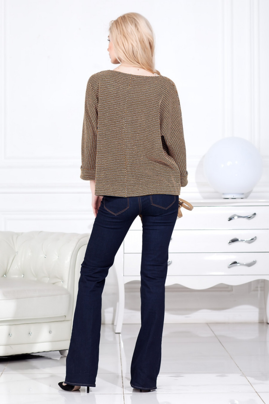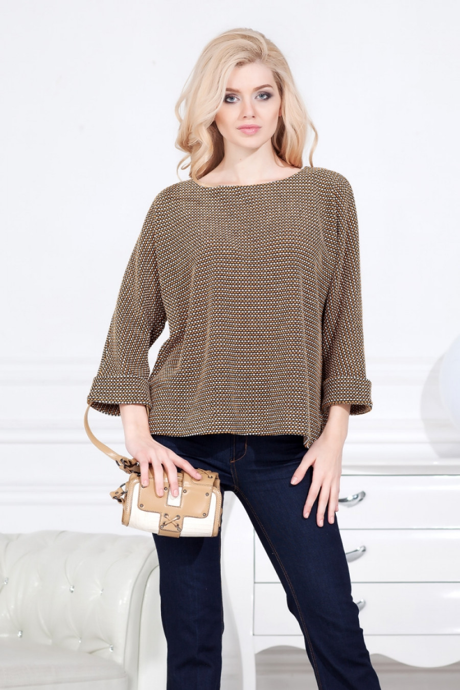 Свитшот из структурного трикотажного полотна с цельнокроенным рукавом 3/4 с манжетом.