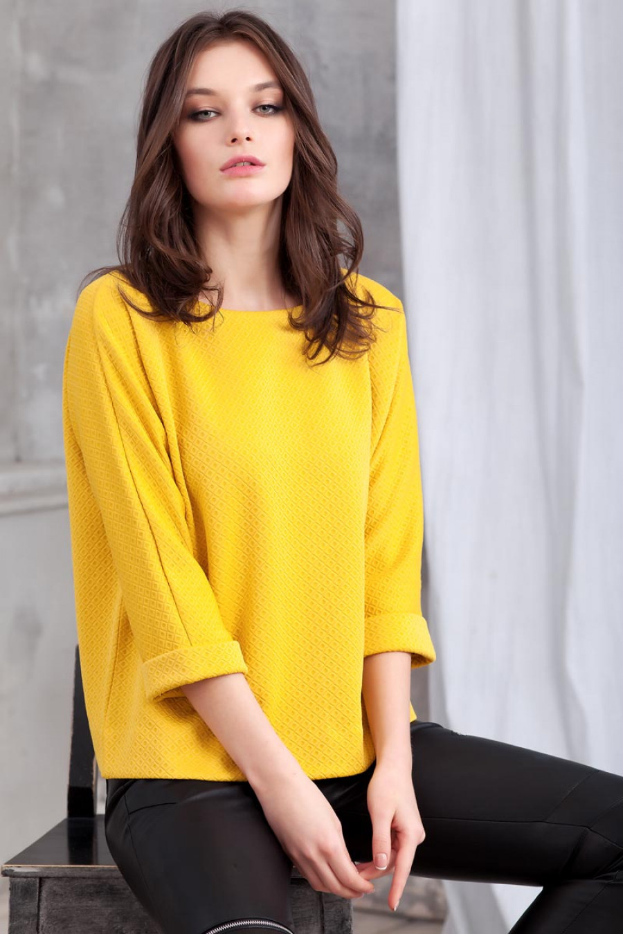 Эффектный свитшот из структурного трикотажного полотна. Модель свободного кроя с цельнокроенным рукавом 3/4 с манжетом. Свитшот прекрасно сочетается с различными видами одежды.