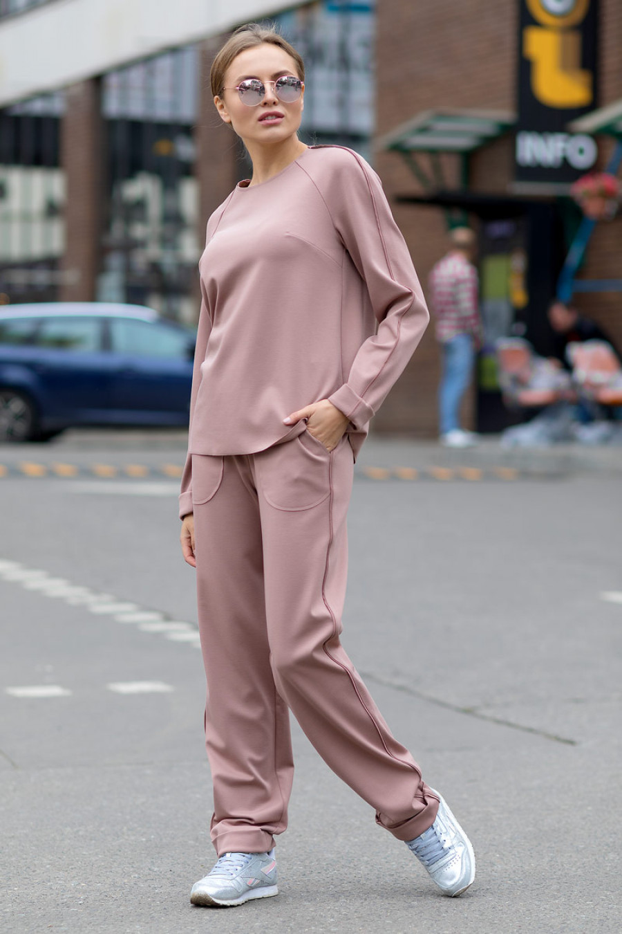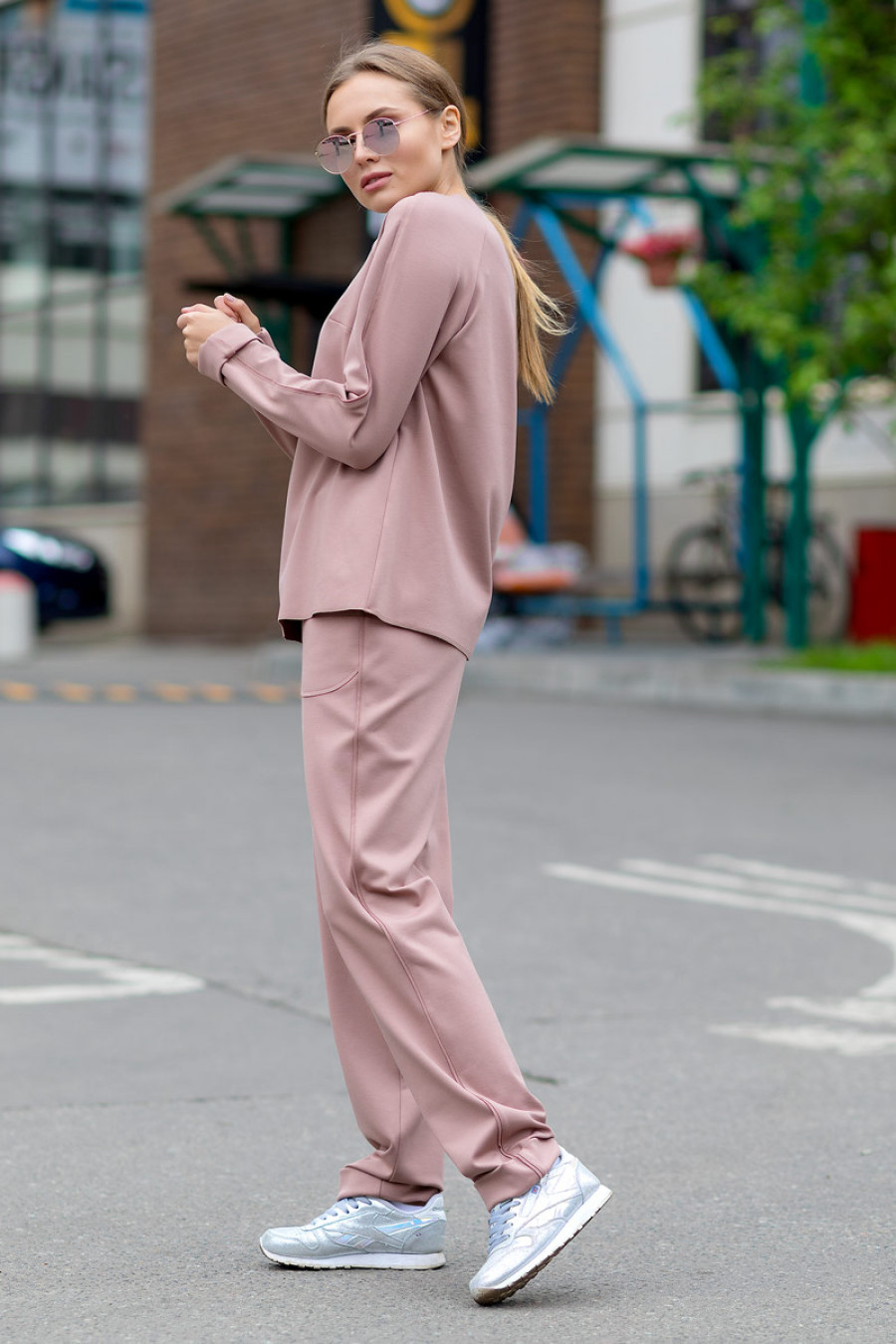 Оригинальный спортивный свитшот из трикотажного полотна. Модель свободного кроя с длинным рукавом реглан. По верхнему шву рукавов модель декорирована кантами. Округлый вырез горловины и низ изделия выполнены с обрезным краем.Прекрасный вариант для прогулк...