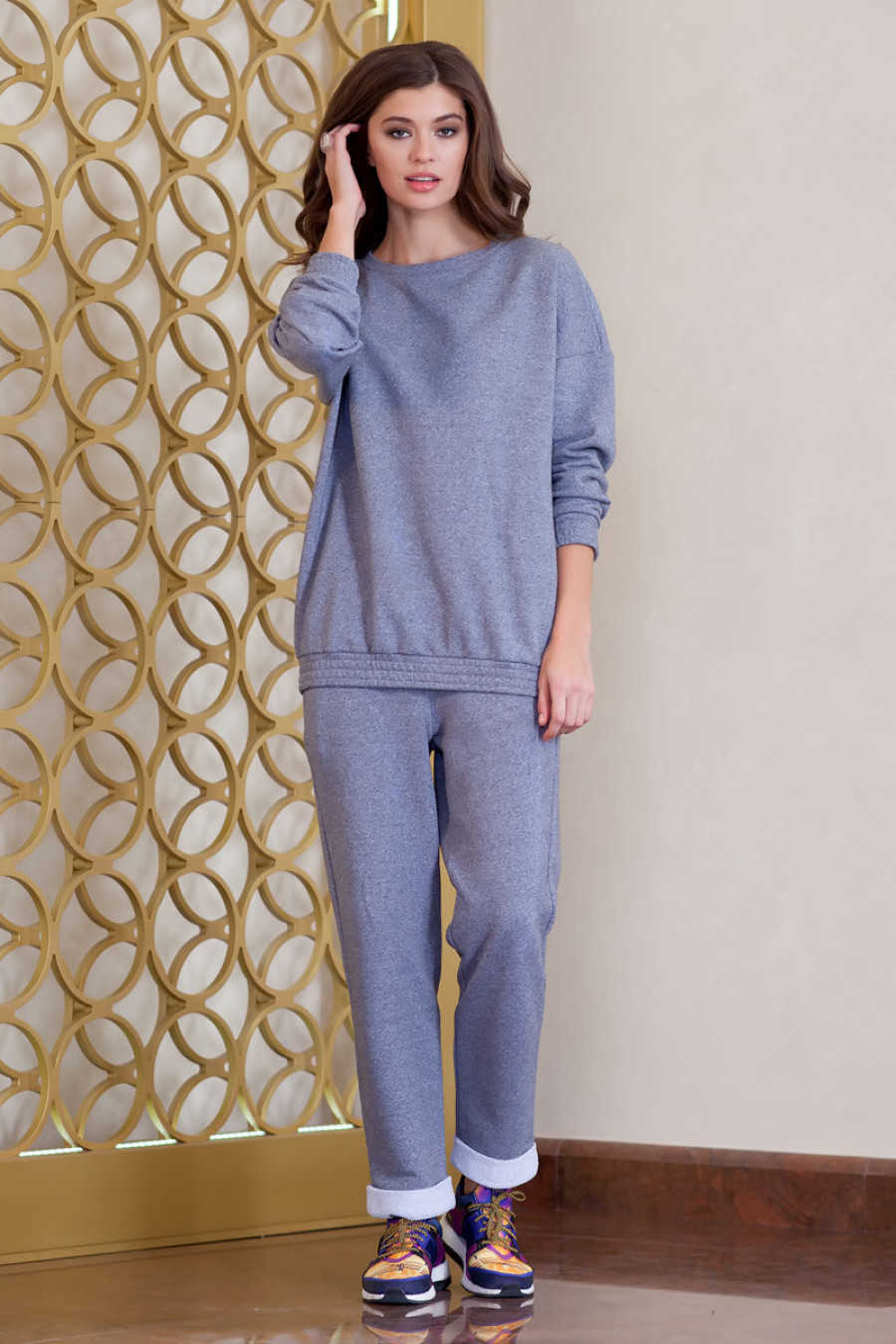 Стильный свитшот из плотного трикотажа. Модель свободного кроя с длинным рукавом. Округлый вырез горловины обработан планкой.