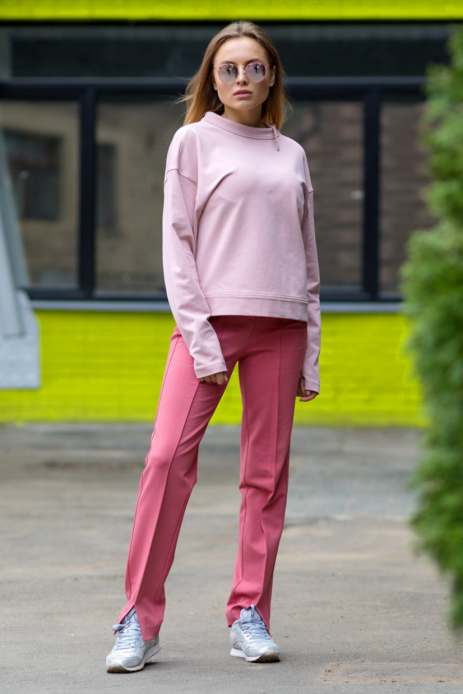 Стильный свитшот из однотонного джерси. Модель свободного кроя с длинным рукавом и аккуратной стойкой. На спинке застежка из завязок на три бантика.