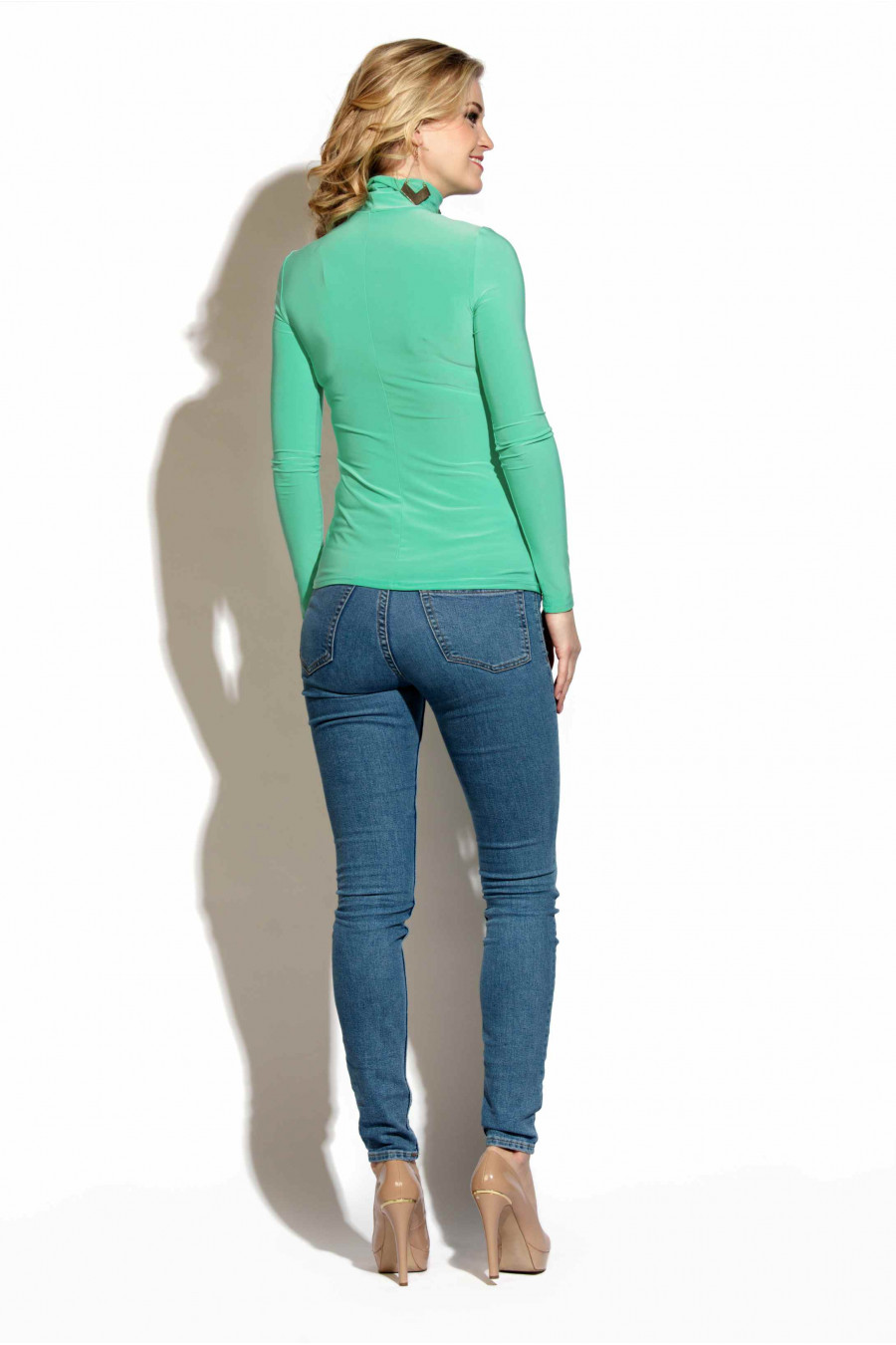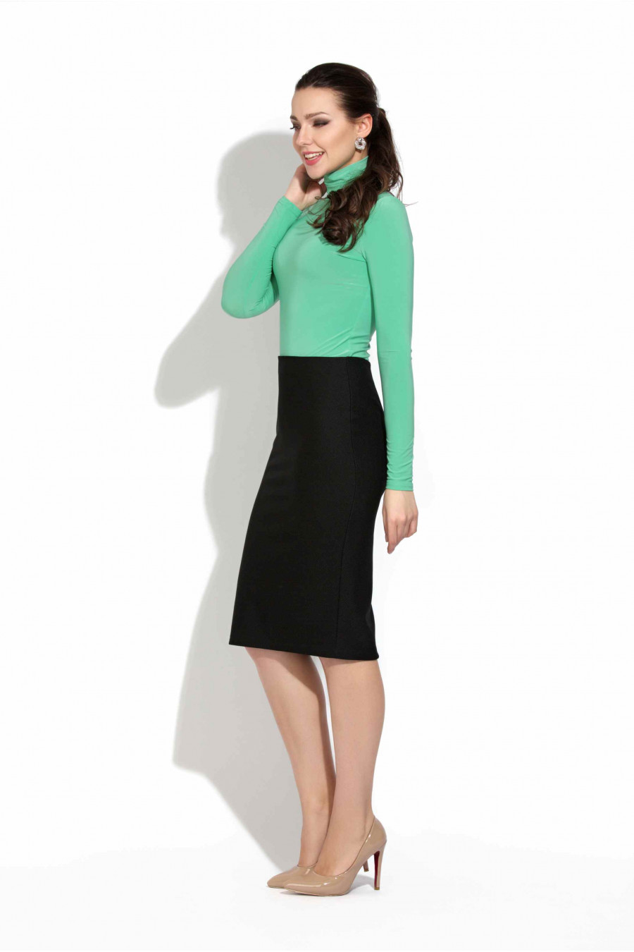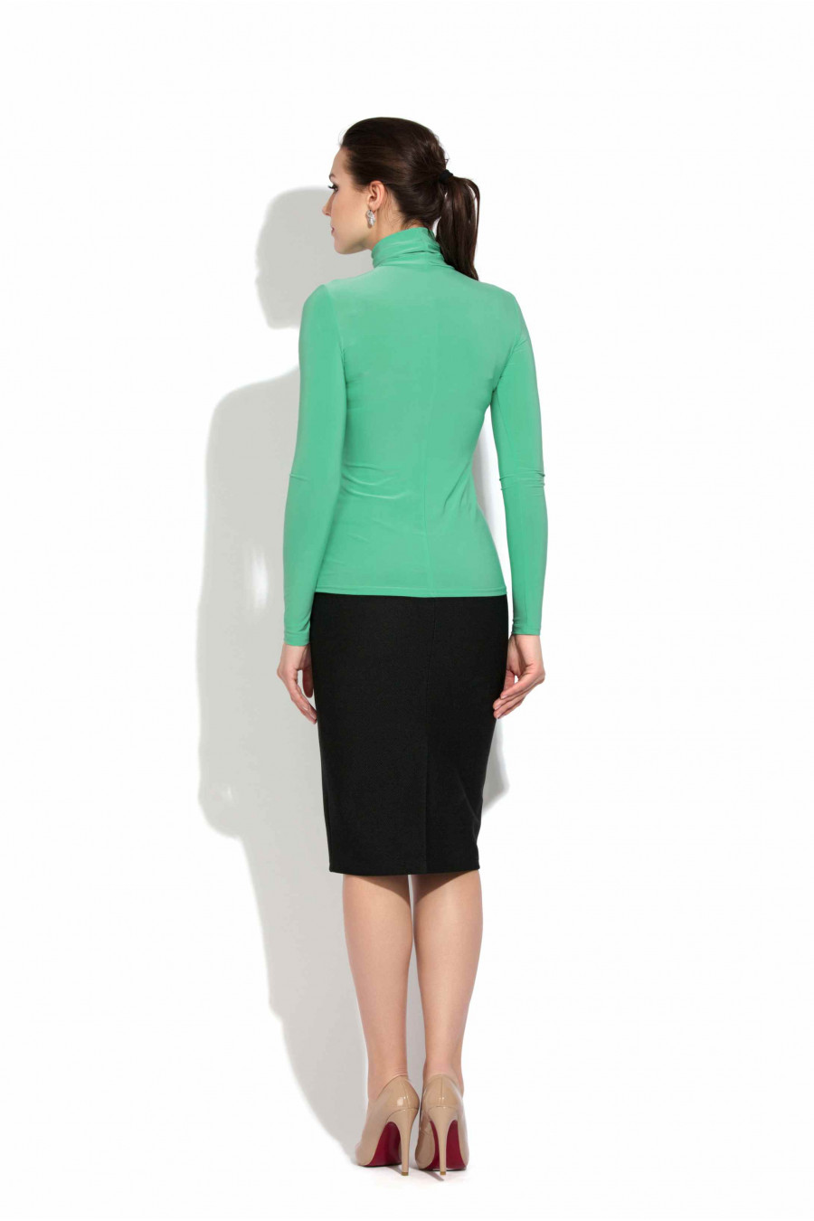 Водолазка из мягкого трикотажа приталенного силуэта. Рукав длинный втачной. Вырез горловины круглый, со стойкой. На спинке средний шов.