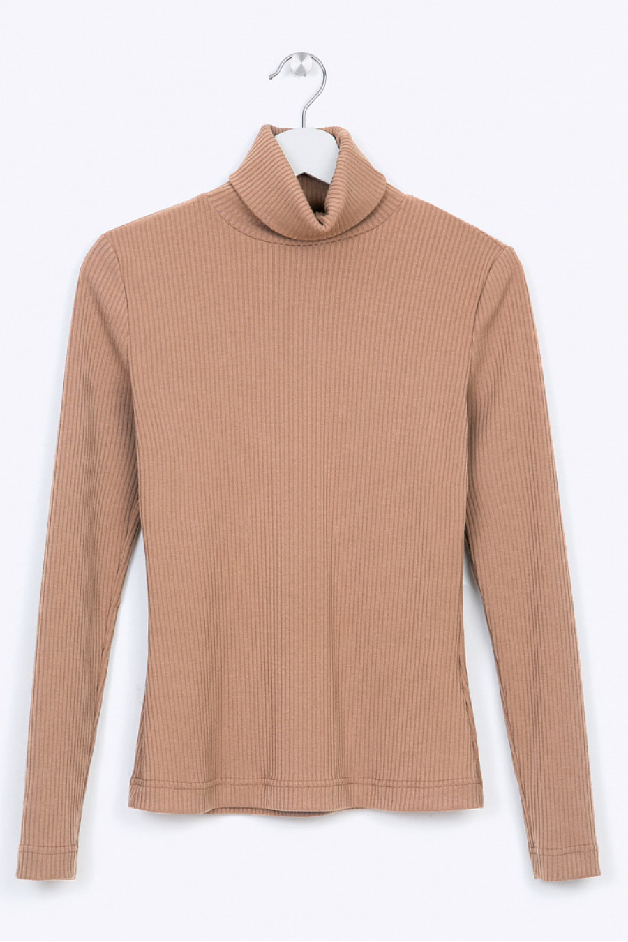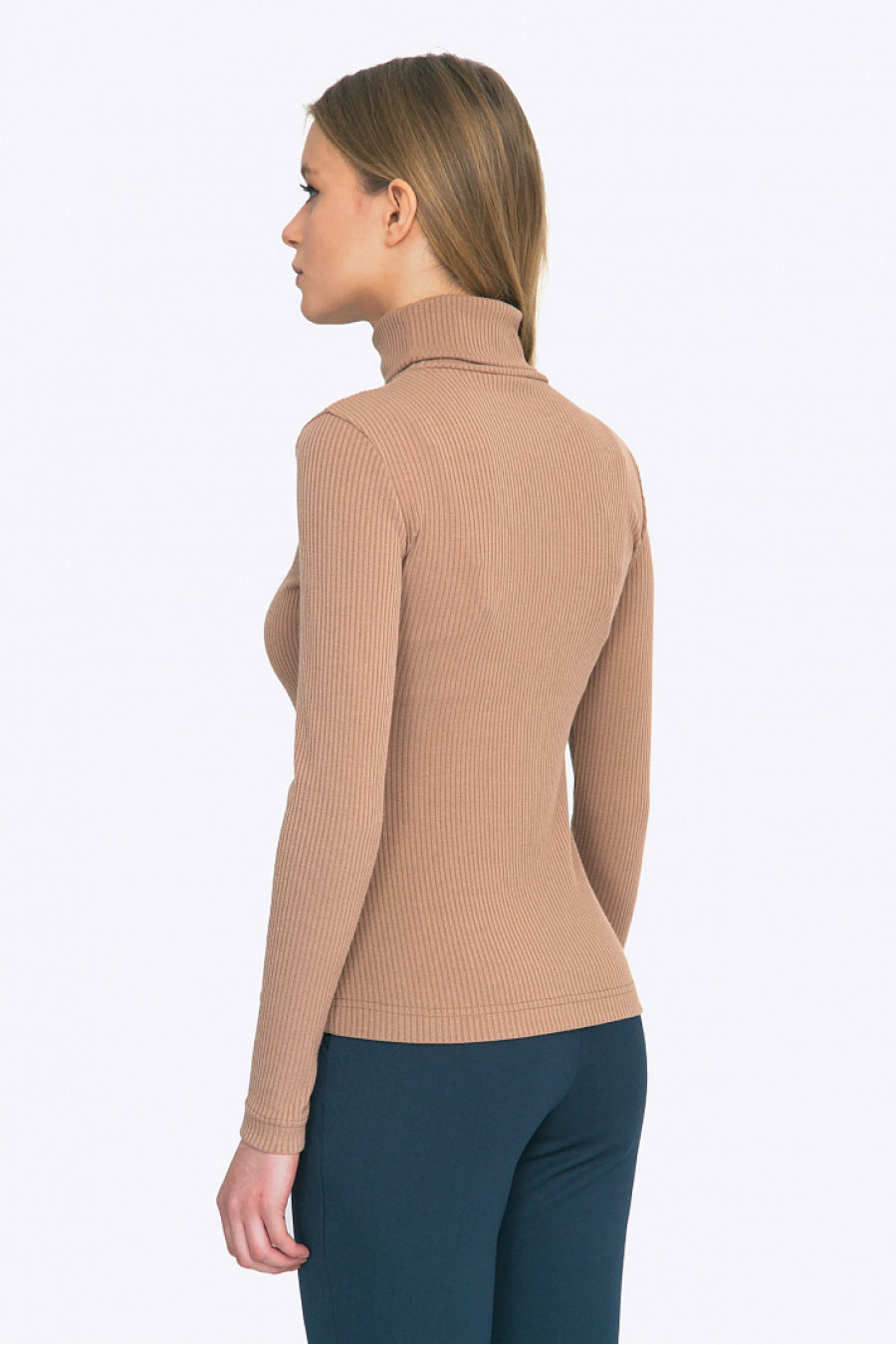 Классическая водолазка из мягкой ткани пастельного оттенка каппучино - поможет создать теплый женственный образ практически для всех случаев жизни. В комплекте с лаконичными брюками или юбкой-карандаш модель образует современный деловой look, а, как пример, с шерстяной юбкой-макси в яркую клетку, стильным полу-пальто - выразительный городской образ. Также - она окажется незаменимой для демисезонного спортивного костюма. Плотное горлышко, гармоничные линии трикотажной смесовой ткани с содержанием вискозы, прямой облегающий силуэт - сделают эту вещь любимым предметом гардероба. Блузка будет хорошо смотреться на золотоволосых и блондинках. Образ на фото дополнен Брюками D076-kravitz. Рост фотомодели 177 см.