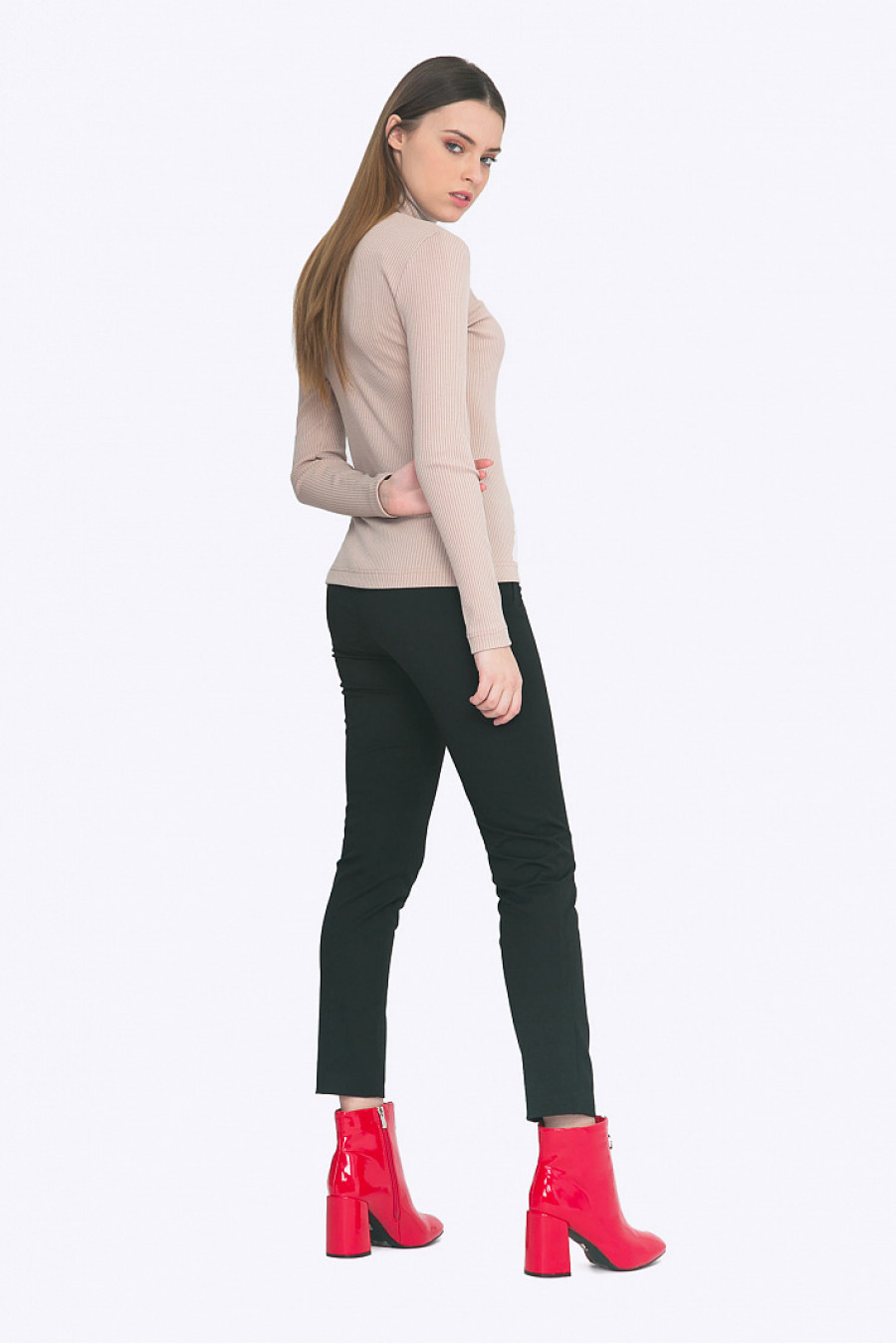 Романтичная водолазка нежного молочного оттенка - прекрасный выбор для создания универсальных женственных образов. Она выручит как в активном отдыхе (с демисезонным спортивным костюмом), так в ежедневном создании делового look - a (с классической юбкой - карандаш или офисными брюками). Даже с вечерним брючным комплектом или юбкой-макси - эта универсальная модель не окажется лишней и подчеркнет ваш хороший вкус. Плотное горлышко, мягкие линии трикотажной смесовой ткани с содержанием вискозы, прямой облегающий силуэт - сделают эту вещь любимым предметом гардероба. Блузка будет отлично смотреться на блондинках и золотоволосый. Образ на фото дополнен Брюками D020-kate. Рост фотомодели 176 см.