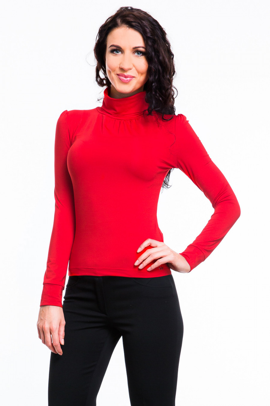 Замечательная водолазка с воротником-гольф и длинными рукавами. Модель выполнена из высококачественного материала, горловина ворота обработана в складку, на рукавах в плечевой части также небольшие сборки, нижняя часть рукава обработана манжетом. Модель будет прекрасно гармонировать с любыми предметами гардероба.