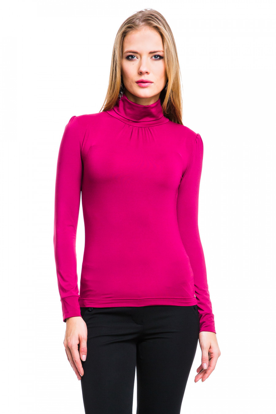 Замечательная водолазка с воротником-гольф и длинными рукавами. Модель выполнена из высококачественного материала, горловина ворота обработана в складку, на рукавах в плечевой части также небольшие сборки, нижняя часть рукава обработана манжетом. Модель будет прекрасно гармонировать с любыми предметами гардероба.