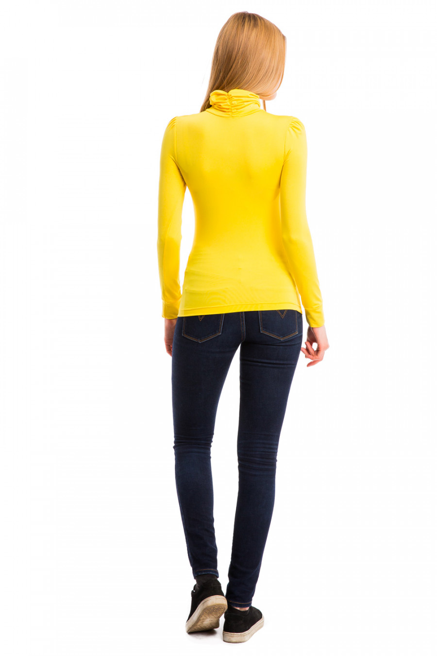 Замечательная водолазка с воротником-гольф и длинными рукавами. Модель выполнена из высококачественного материала, горловина ворота обработана в складку, на рукавах в плечевой части также небольшие сборки, нижняя часть рукава обработана манжетом. Модель будет прекрасно гармонировать с любыми предметами гардероба.