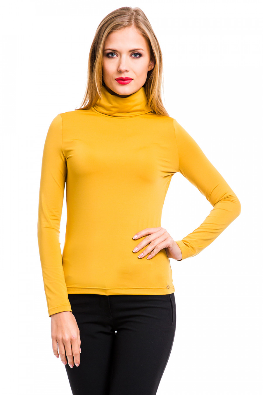 Практичная водолазка лаконичного дизайна удачно дополнит Ваш гардероб. Модель облегающего силуэта с длинными рукавами и воротником-гольф, выполнена из микрополиэстра и эластана. Швы модели выполнены частыми стежками, благодаря этой обработке швы очень прочные и не подвергаются деформированию. Идеальный вариант для повседневного использования.