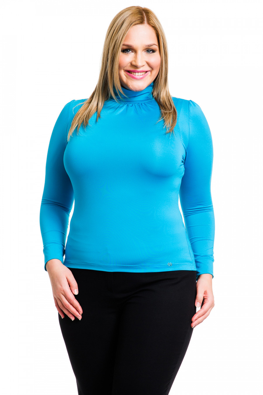 Замечательная водолазка с воротником-гольф и длинными рукавами. Модель выполнена из высококачественного материала, горловина ворота обработана в складку, на рукавах в плечевой части также небольшие сборки, нижняя часть рукава обработана манжетом. Модель будет прекрасно гармонировать с любыми предметами гардероба.