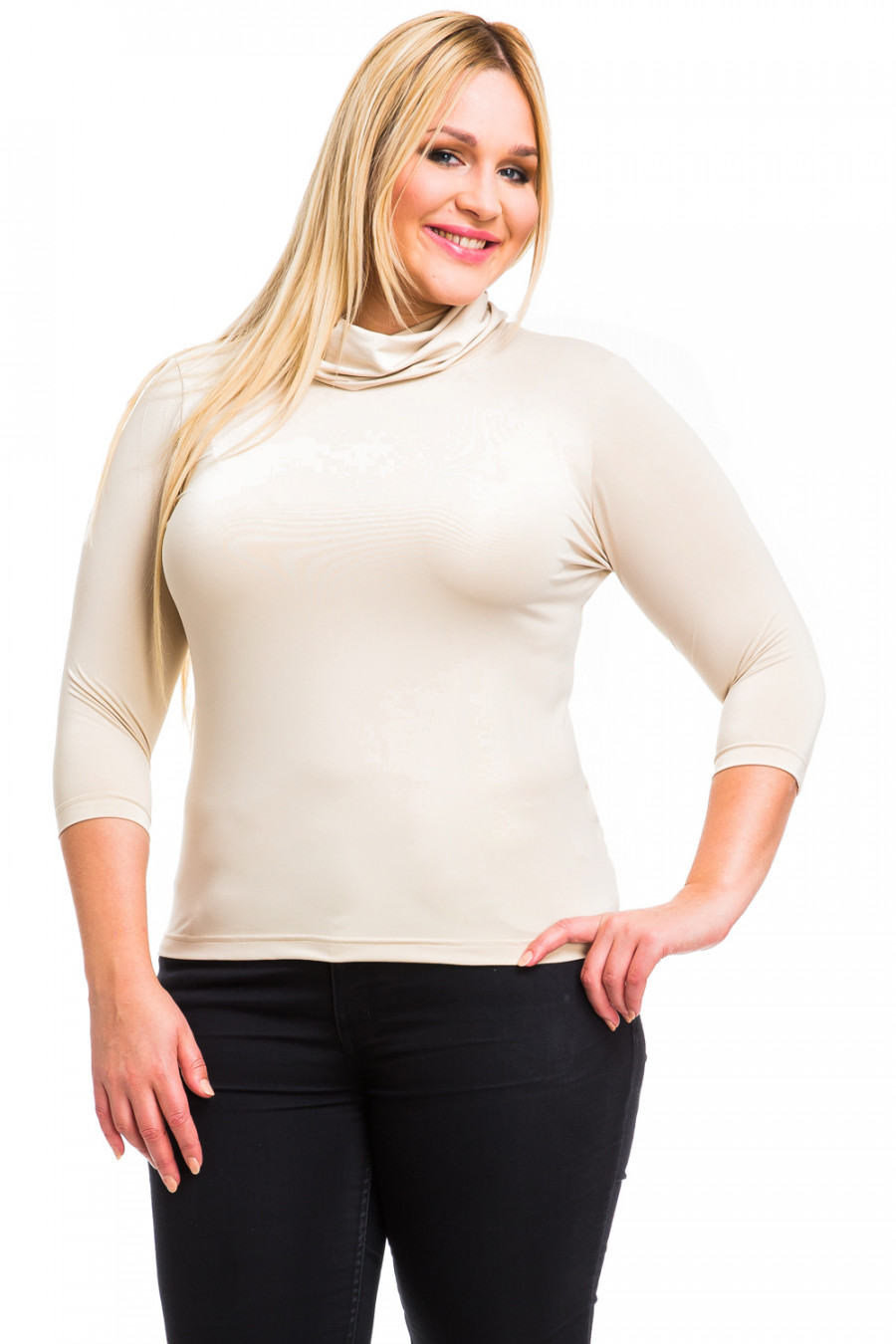 Стильная водолазка из микропилиэстра. Приталенный крой, модель с рукавами 3/4 и изящным воротником "хомут", который красиво создает объемные складки, сзади ворот немного удлинен. Швы модели выполнены частыми стежками, благодаря этой обработке швы очень прочные и не подвергаются деформированию.