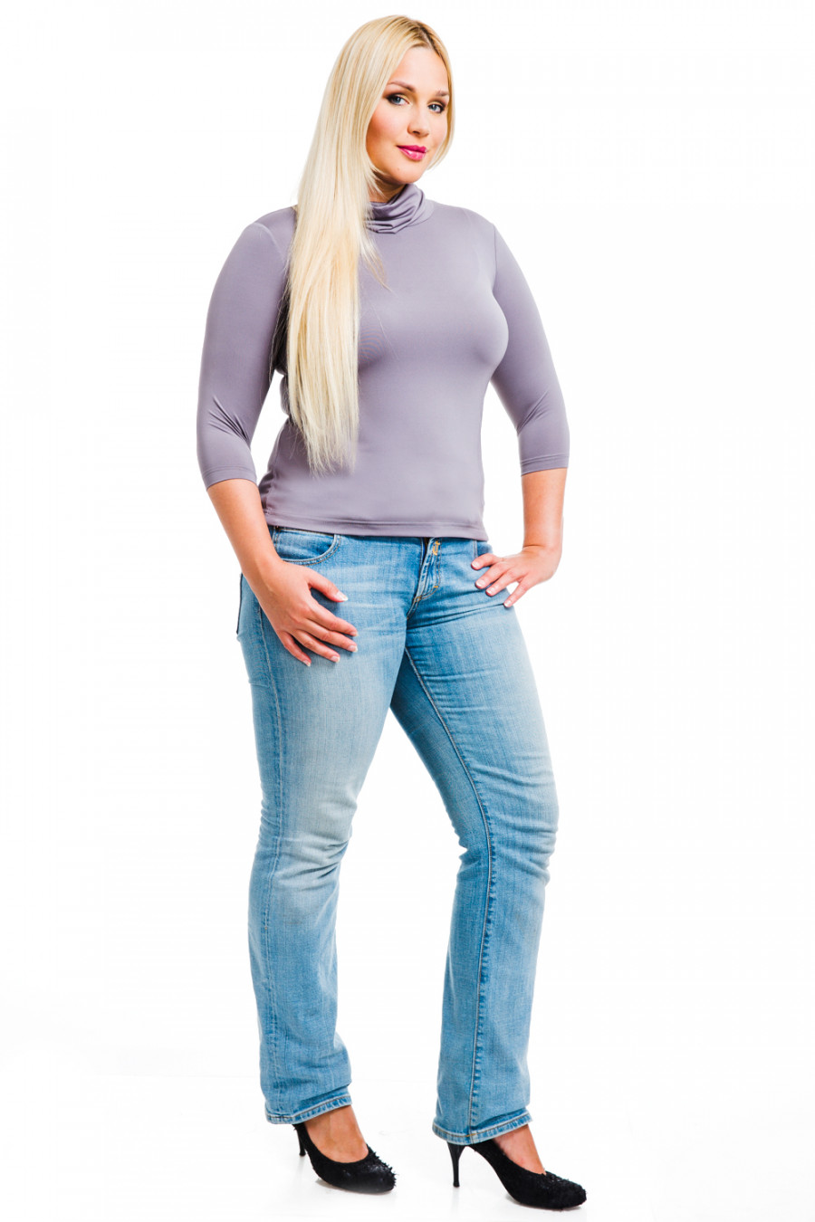 Стильная водолазка из микропилиэстра. Приталенный крой, модель с рукавами 3/4 и изящным воротником "хомут", который красиво создает объемные складки, сзади ворот немного удлинен. Швы модели выполнены частыми стежками, благодаря этой обработке швы очень прочные и не подвергаются деформированию.