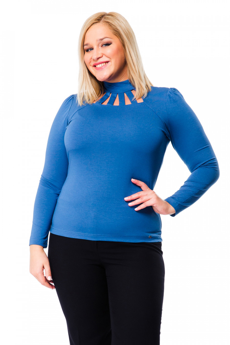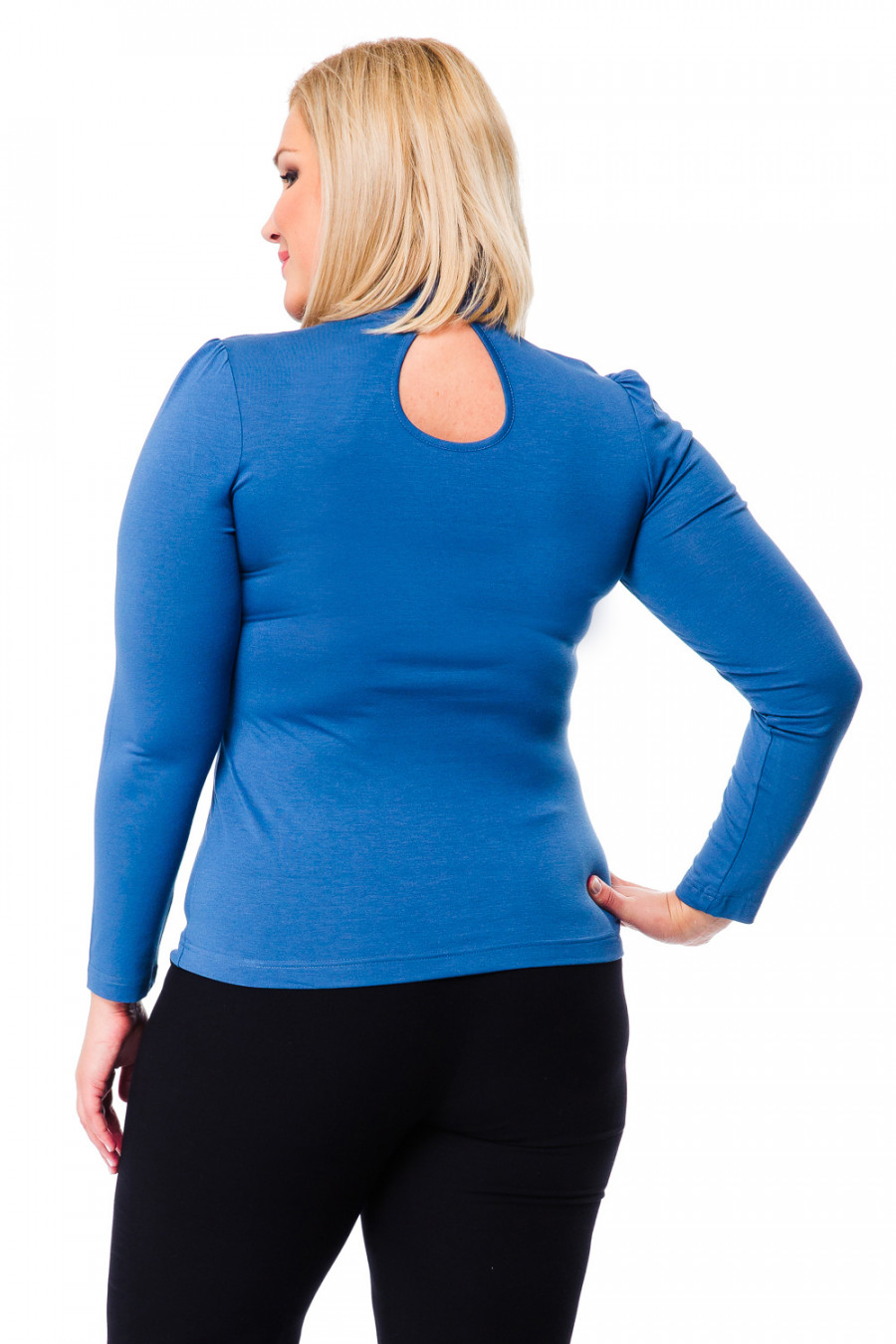 Оригинальная модель водолазки приталенного кроя с длинным рукавом и горловиной-стойкой. Изделие выполнено из высококачественного материала. Изящество модели придают небольшие вырезы от линии горловины до линии груди, образуя очаровательный полукруг. Сзади горловина на застежке-две пуговицы.