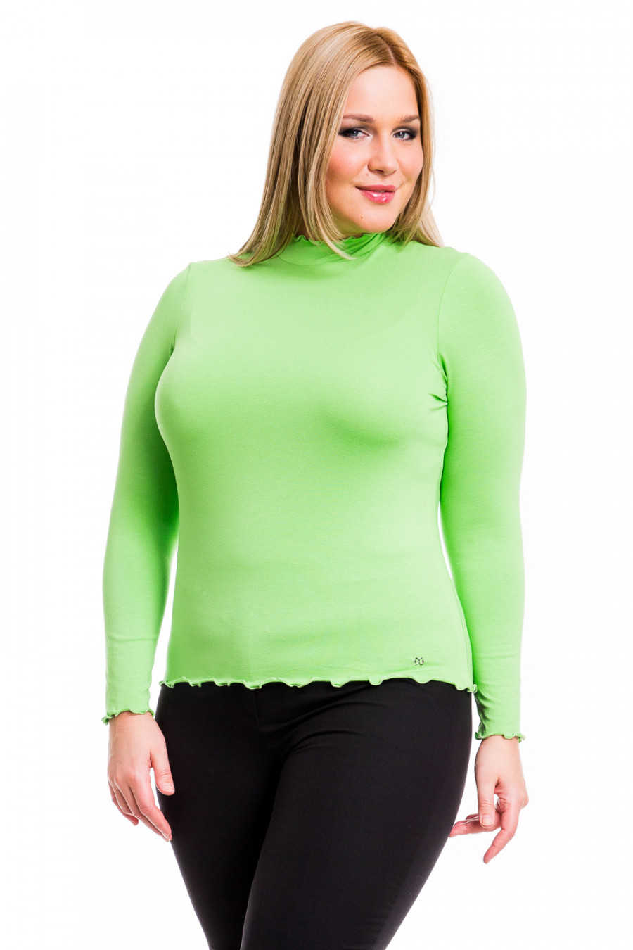 Очаровательная водолазка с длинным рукавом приталенного силуэта с воротником-стойкой. Модель выполнена из высококачественной вискозы. Нижняя часть изделия, манжеты и горловина обработаны специальным швом, что создает эффект волана.