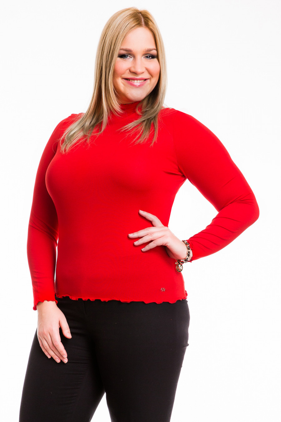 Очаровательная водолазка с длинным рукавом приталенного силуэта с воротником-стойкой. Модель выполнена из высококачественной вискозы. Нижняя часть изделия, манжеты и горловина обработаны специальным швом, что создает эффект волана.