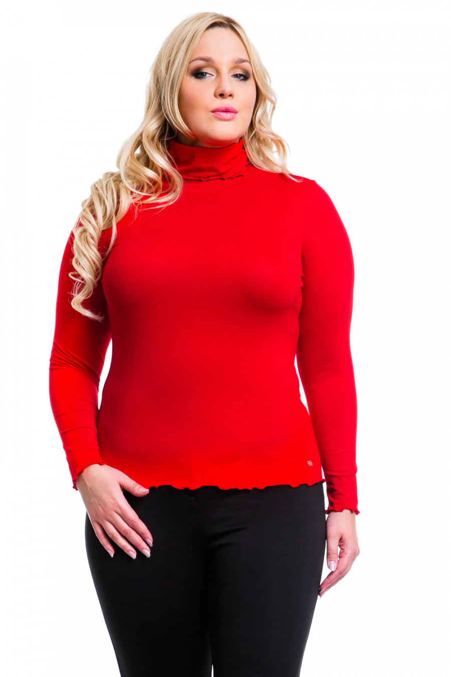 Очаровательная водолазка с длинным рукавом приталенного силуэта с высоким воротником-гольф. Модель выполнена из высококачественной вискозы. Нижняя часть изделия, манжеты и горловина обработаны специальным швом, что создает эффект волана. Швы модели выполнены частыми стежками, благодаря этой обработке швы очень прочные и не подвергаются деформированию. Идеальный вариант для повседневного использования.