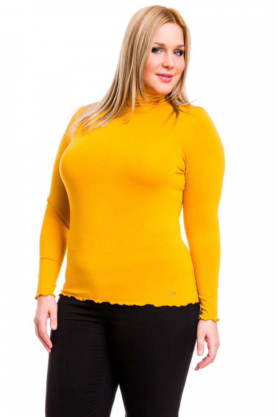 Очаровательная водолазка с длинным рукавом приталенного силуэта с высоким воротником-гольф. Модель выполнена из высококачественной вискозы. Нижняя часть изделия, манжеты и горловина обработаны специальным швом, что создает эффект волана. Швы модели выполнены частыми стежками, благодаря этой обработке швы очень прочные и не подвергаются деформированию. Идеальный вариант для повседневного использования.