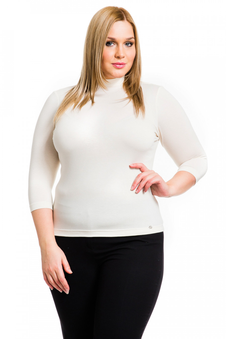 Водолазка - базовый элемент женского гардероба. Мягкий трикотаж и полуприлегающий силуэт эффектно подчеркивают фигуру. Модель с воротником-стойкой и рукавами 3/4 выполнена из натуральной вискозы с применением специальных ниток высокого качества. Швы модели выполнены частыми стежками, благодаря этой обработке швы очень прочные и не подвергаются деформированию.