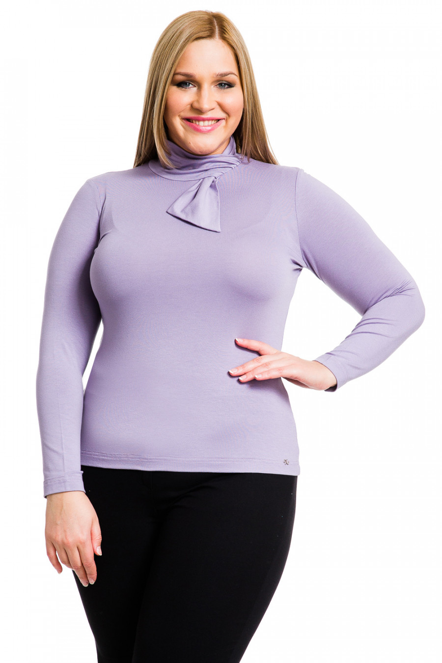Оригинальная водолазка в стильном исполнении. Модель приталенного кроя с длинным рукавом и необычно декорированным воротом. Привычный ворот-хомут в новом дизайне, выступающая часть в форме небольшого галстука. Отличная модель для создания повседневного образа. Модель представлена в различных цветах.