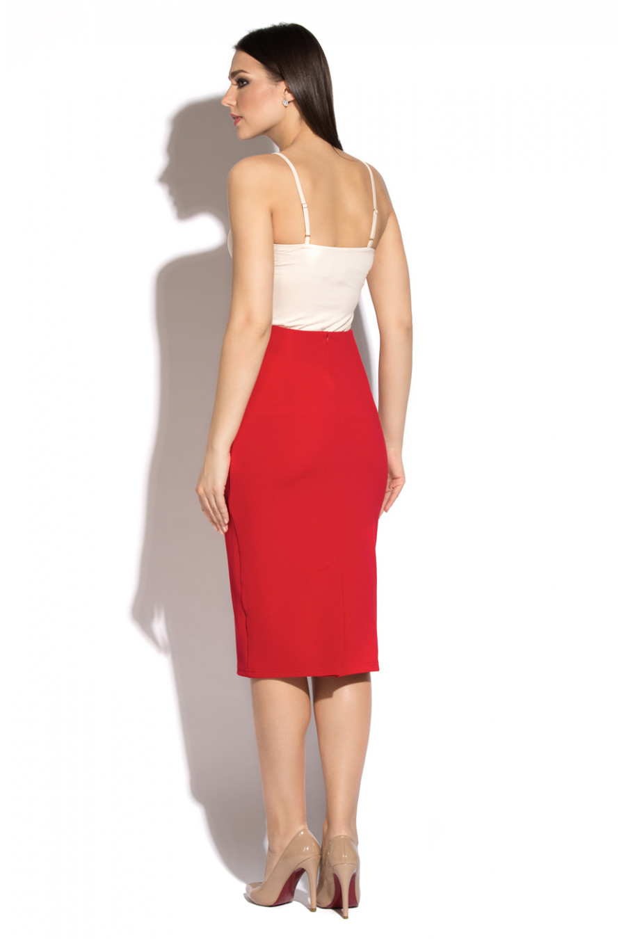 Юбка – «карандаш» выполненная из ткани «диор» – это плотное трикотажное полотно на первый взгляд очень похоже на костюмную ткань. Юбка фиксируется значительно выше линии талии. Такая посадка юбки дает возможность носить, модные в этом сезоне, укороченные блузы и топы. Верхний край юбки обработан широкой обтачкой. На заднем полотнище юбки вытачки, средний шов, шлица и застежка на потайную молнию.