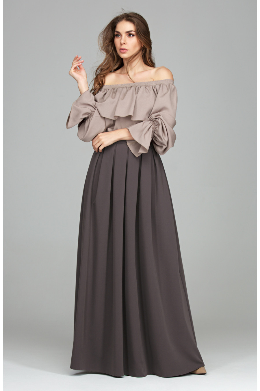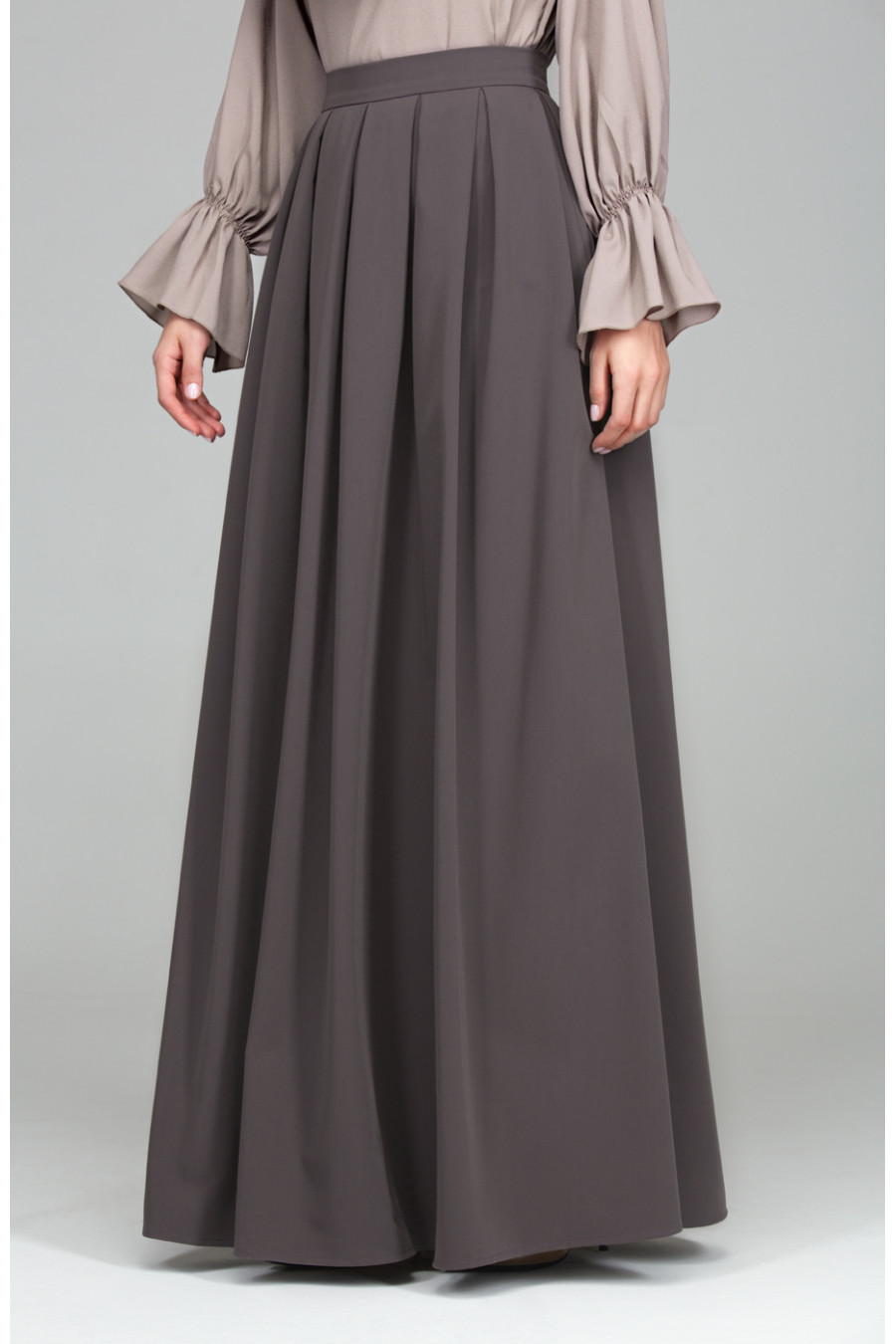 Юбка «макси» из ткани «гальяно». Юбка на поясе с застежкой на спинке на потайную молнию. Юбка в глубокую частую складку, что придает модели элегантности и романтичность.